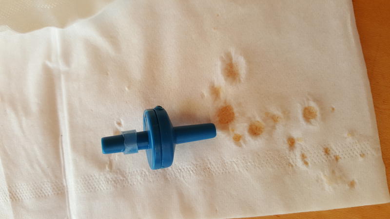 Wie auf dem zweiten Bild zu sehen ist, müsste es doch braun heraustropfen, wenn man die Ventile abmacht und über einem Zewa abtupft?!