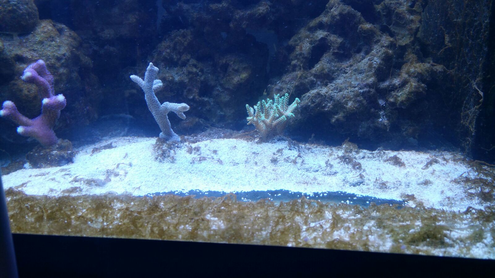 Jetzt stehe ich da und weiß nicht mehr weiter.. Von Beginn an sind keine Nährstoffe nachzuweisen, eine wie ich vermute Bakterienblüte hatte ich schon und jetzt sind die Dinoflagellaten im Becken die anfangen alles zu überziehn...