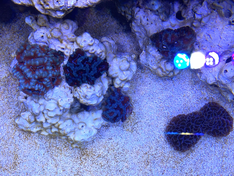 Die Kieselalgen kommen und gehen. Können auch Dinos sein, da ich öfter beobachten kann wie die Korallen zooxanthellen ausstoßen.