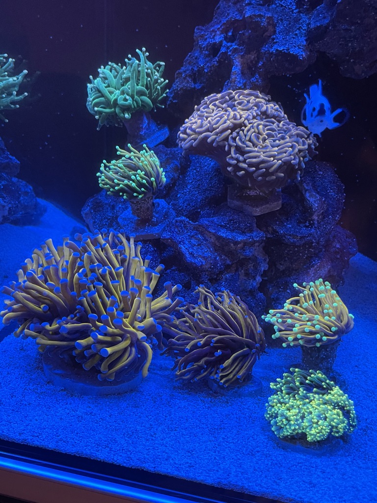 die Montipora BubbleGum dagegen will aber nicht so richtig, und seit paar Tagen sind paar Köpfe meiner Euphyllia Rasta blas geworden