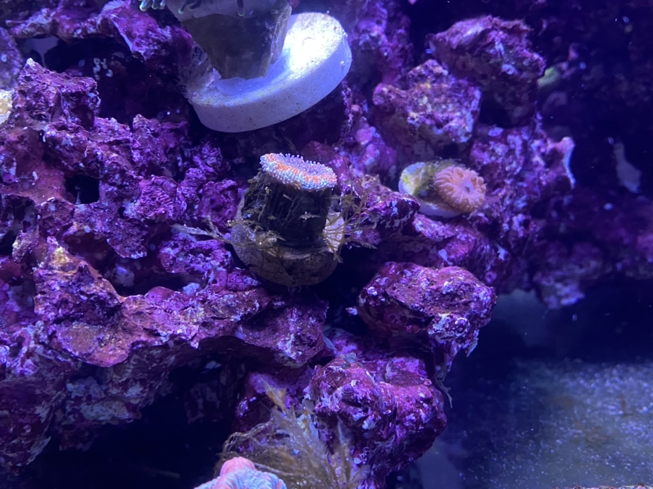 Eine grüne Montipora Platte musste ich gestern rausnehmen, die war abgestorben und komplett weiss..