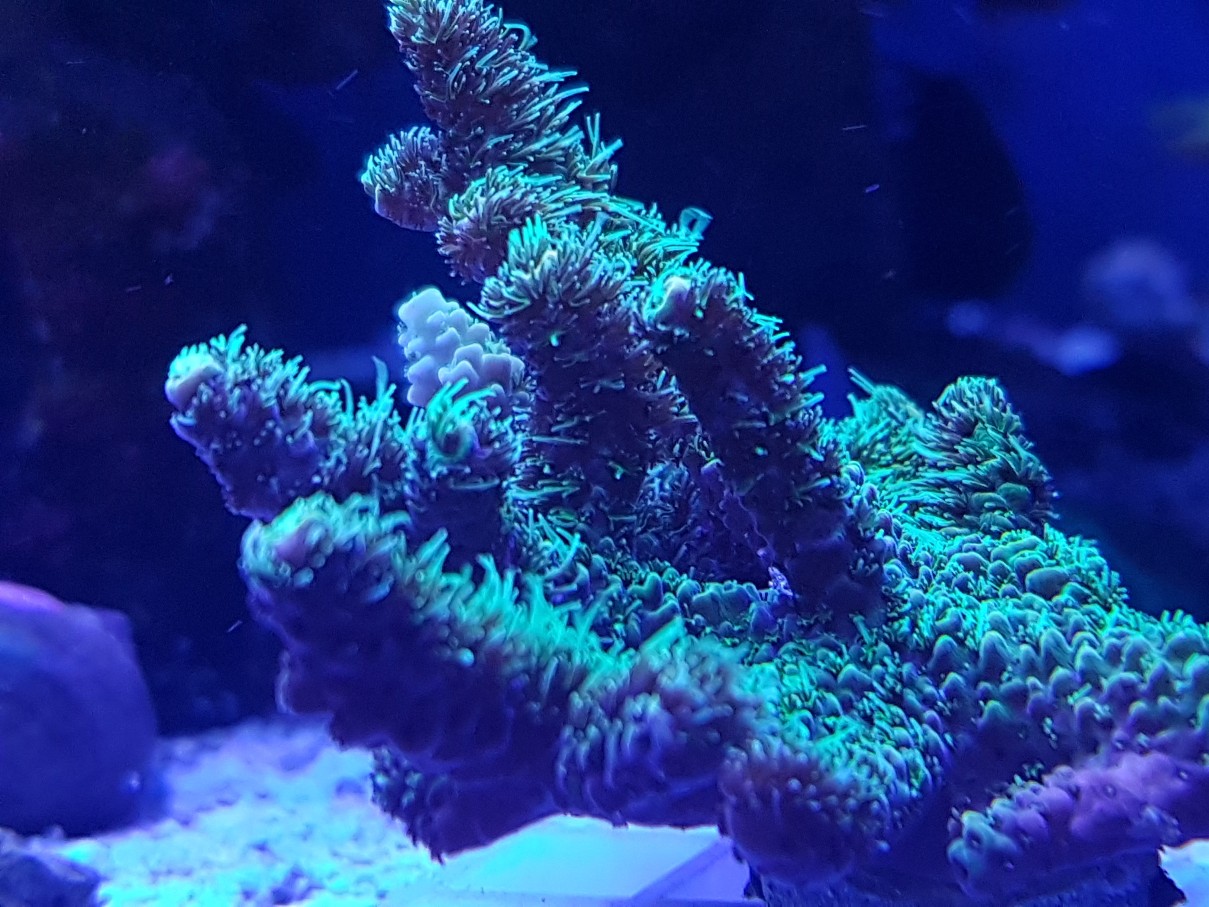 Anbei mal ein Bild einer Millepora, die ich vor 3 Wochen gekauft habe und die immer noch top (wenn nicht sogar einen Ticken besser) steht. Das Bild ist aus der abendlichen Blauphase.
