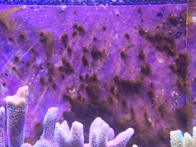 Derbesia könnte sein, sieht aber bei mir alles etwas bräunlicher aus. Hier habe ich noch mal eine Nahaufnahme von der Pumpe, die ca. 2 Wochen nach Reinigung wieder so aussieht... Silikat habe ich auch erst getestet, ist im Becken <0,01... Bis auf den Neuzugang habe ich ja keine Verluste, deshalb will ich es erstmal mit kleineren Stellschrauben versuchen