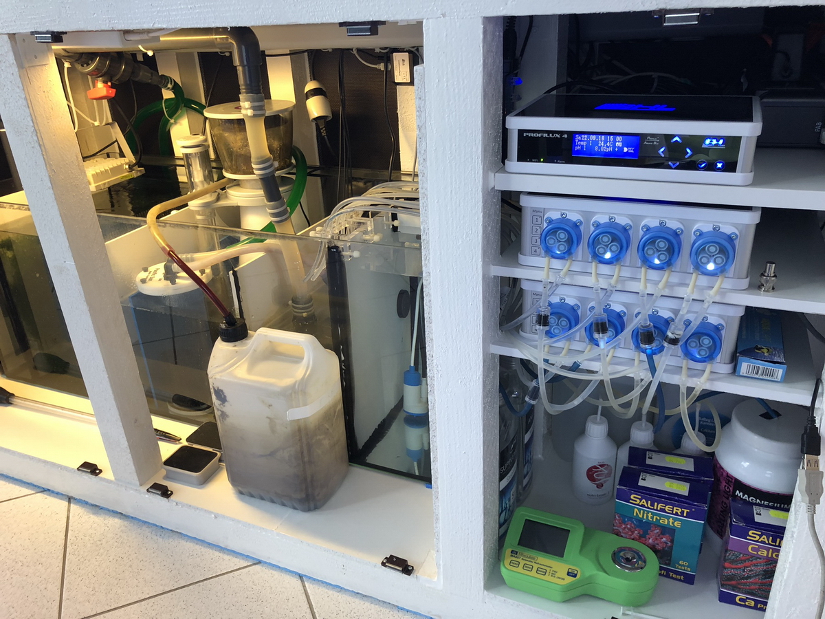 Aktuell läuft das Ganze mit Triton aber ohne Phosphatabsorber (war auf 0) nur Kohle und Refugium.