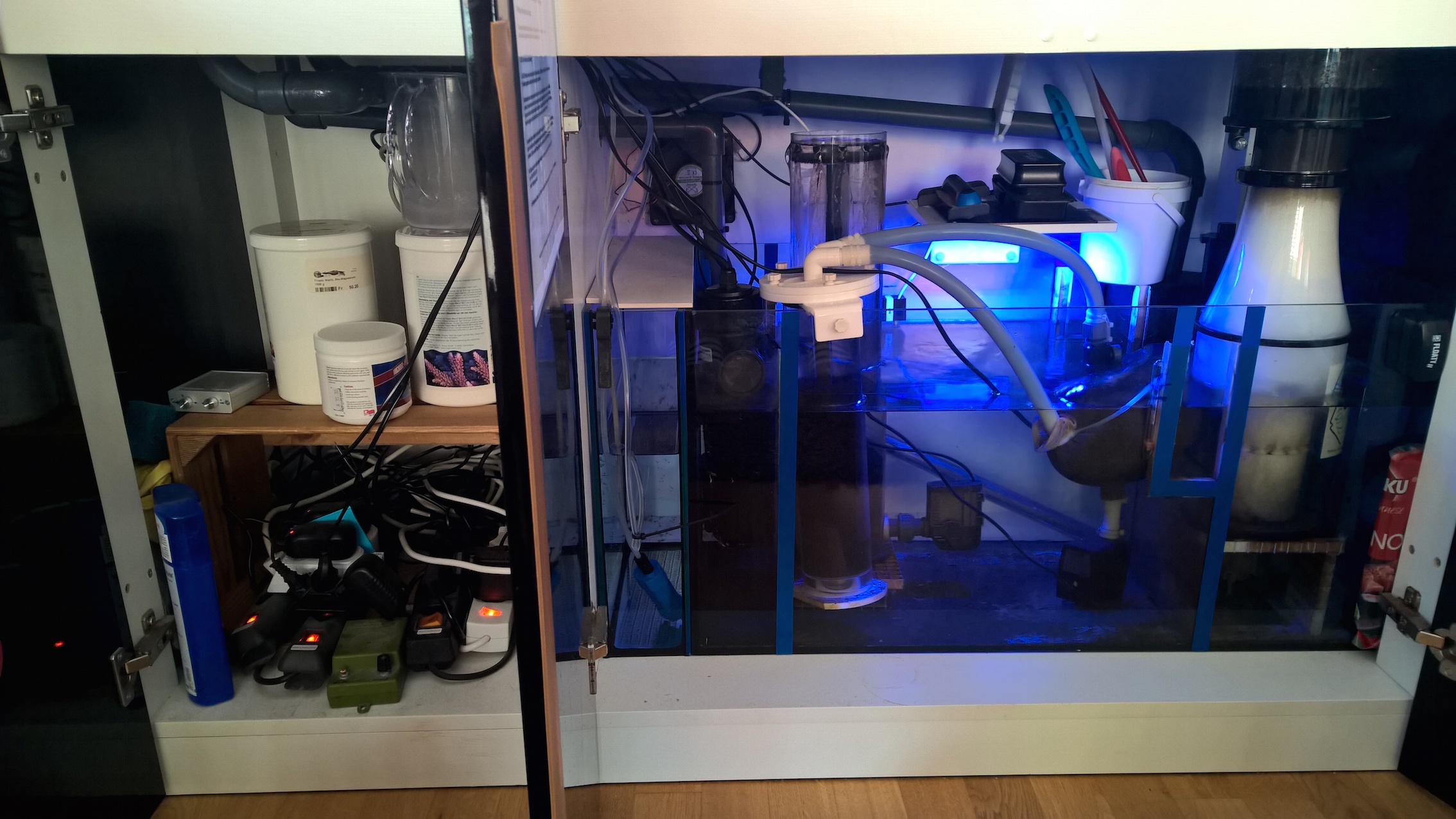 Das TB bleibt mehr oder weniger so sauber, weil ich es einmal im Monat reinige. Stell da alles ab was im TB ist, reinige die Scheiben, Boden etc. Lass dann alles setzen und sauge dann ab. Gibt dann so ungefähr 20Lt. "Dreckwasser", welches als Wasserwechsel (zusammen mit Dichtekontrolle) ersetzt werden. Das Becken hat 500Lt. und das ganze System, mit TB, so um die 608Lt. So bleibt es schön sauber und sieht gut aus