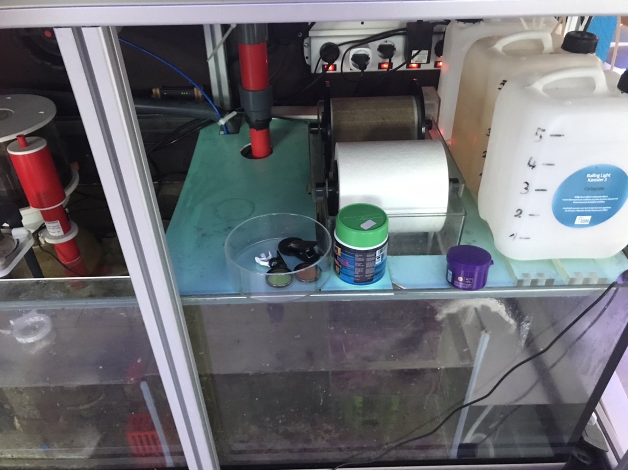 Da ich mit Triton angefangen habe, musste natürlich eine grosse Pumpe her, da sie ja das 10fache empfehlen. durch den Wechsel auf Balling und durch den Vliesfilter, hat sich das ja schon alles verändert. Ich muss es einfach mal auslitern. Dann weiss ich bescheid.