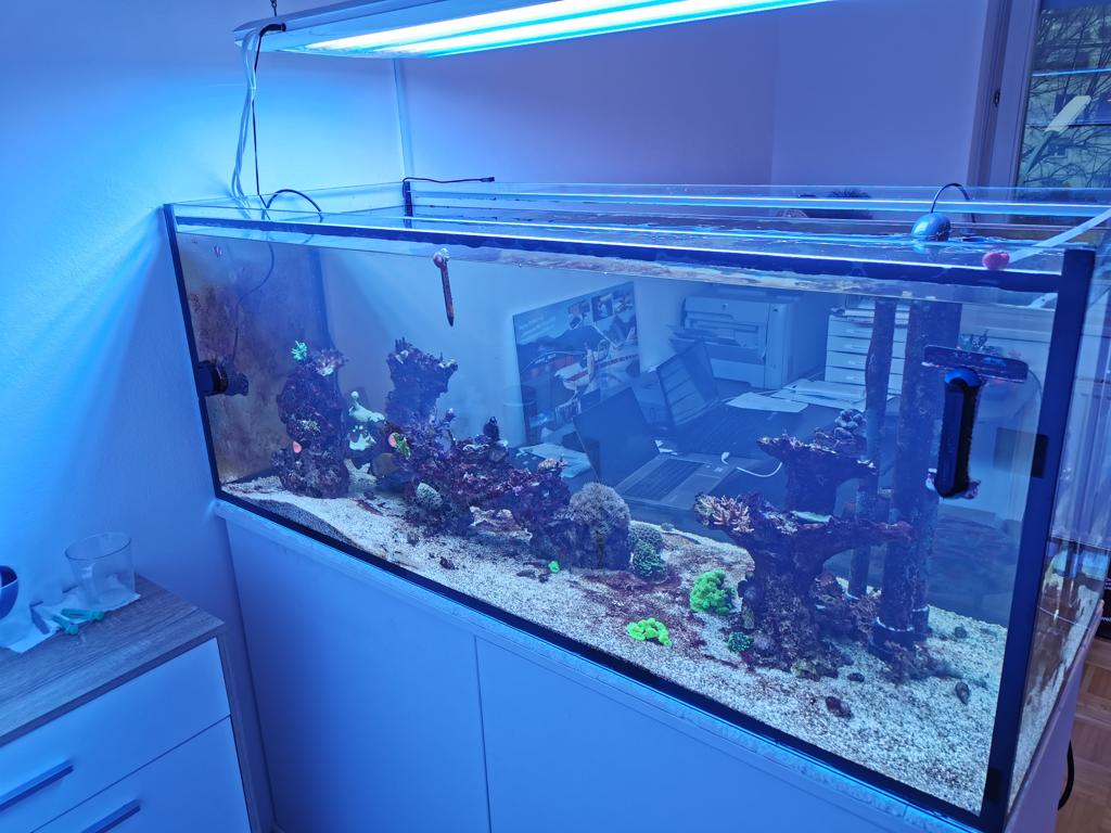 mein Name ist Rene und komme aus dem Süden von Österreich (Kärnten). Ich versuche mich schon seit ein paar Jahren an der Meerwasser-Aquaristik, zuerst mit einem 180L Becken was mal mehr, mal weniger erfolgreich lief, aber die Plagen (Cyanos und Glasrosen) überhand nahmen. Nach 2 Umzügen innerhalb von 6 Monaten haben fast alle Korallen aufgegeben - ein schwerer Rückschlag. In der neuen Wohnung habe ich im Juli 2019 ein größeres Becken gestartet (Abmessungen 150x60x60cm), in der Hoffnung die Plagen durch natürliche Fressfeinde besser in den Griff zu bekommen und mehr Stabilität durch das größere Volumen zu erhalten.