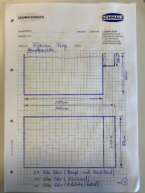 Händisch wurden die Zeichnungen aufs Papier gebracht und an den Aquarienbauer weitergegeben und das Projekt nahm langsam Fahrt auf.