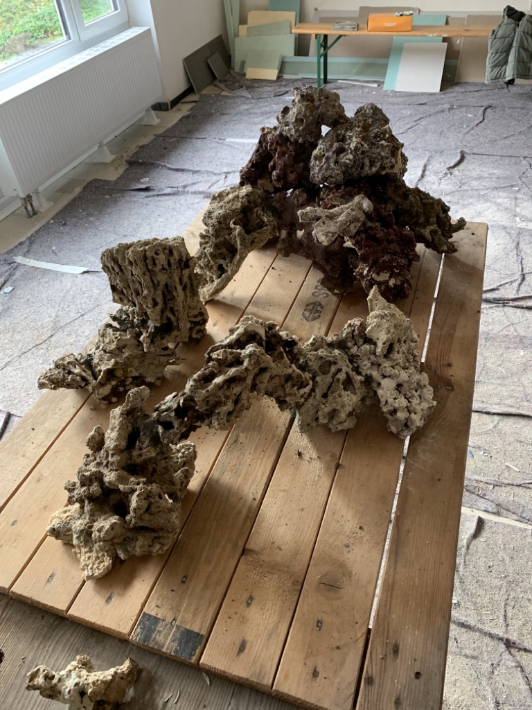 Der Aufbau wird aus Real Reef Rocks, totem Pukani Riffgestein und ein paar kg Lebendgestein, welches direkt für mich importiert wird, bestehen.