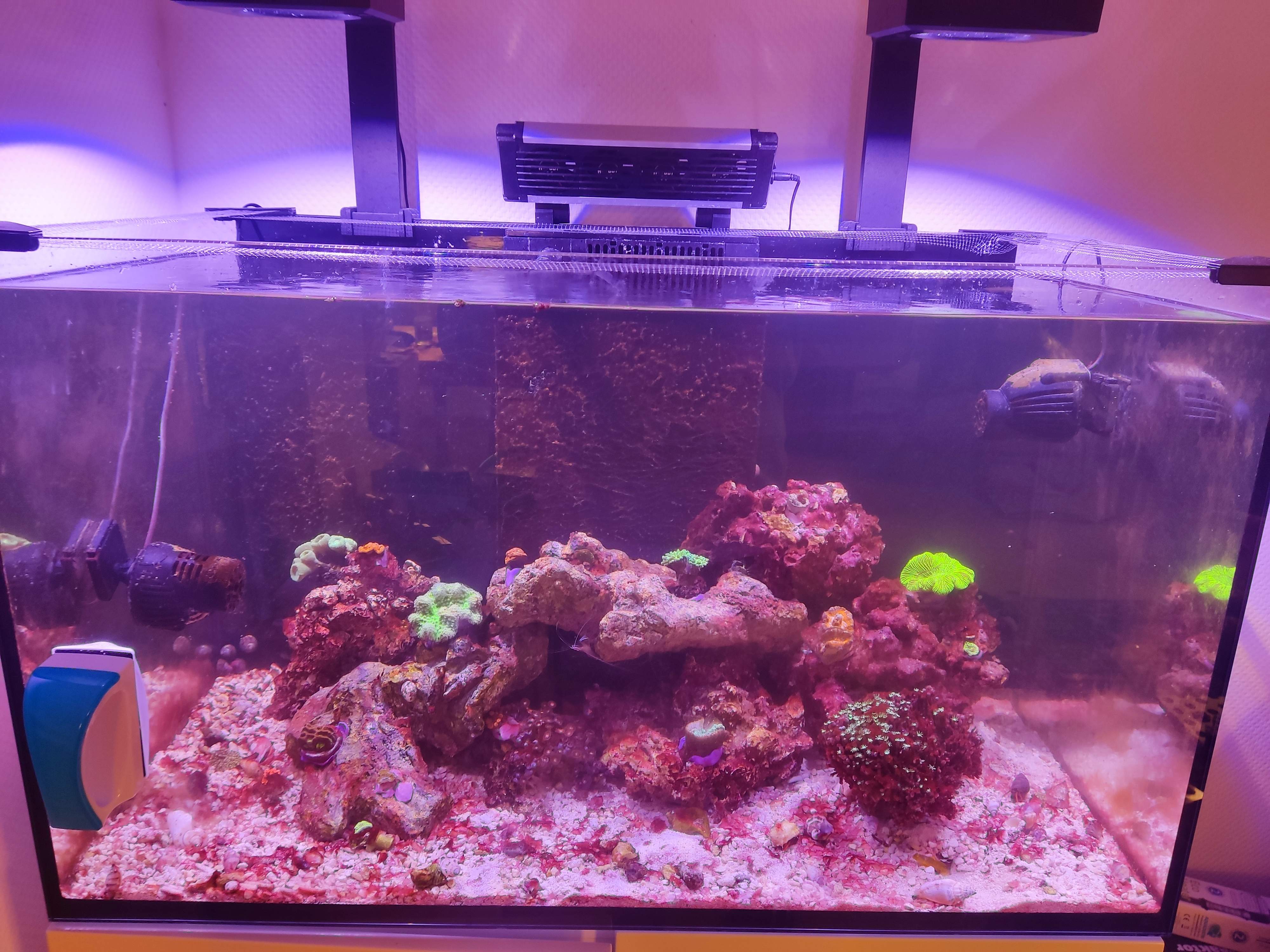 ja die Red Sea LEDs erlauben Blau und Weiß separat einzustellen. Weiß läuft aktuell niedriger als Blau , ich würde dann mal die Werte absenken.