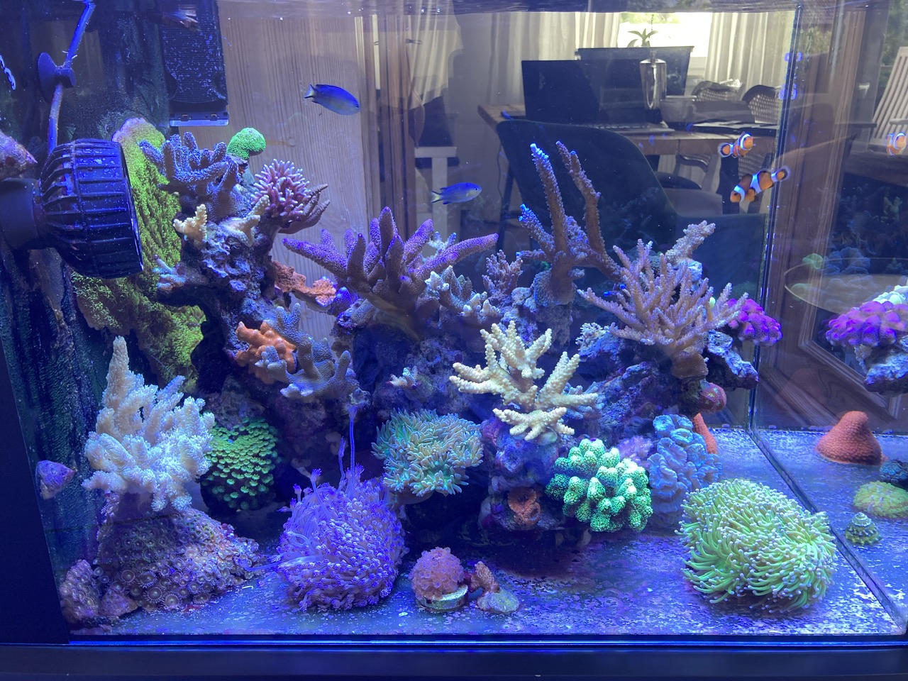 Außerdem habe ich meine beiden AM 3.1 Pumpen durch EINE AM 7.1 ersetzt! Jetzt ist die Strömung viel besser und die Korallen scheinen es zu mögen! Hab auch weniger Mulm auf dem Boden und nur noch eine kleine Ecke wo es sich sammelt. Da kann ich es leicht absaugen.