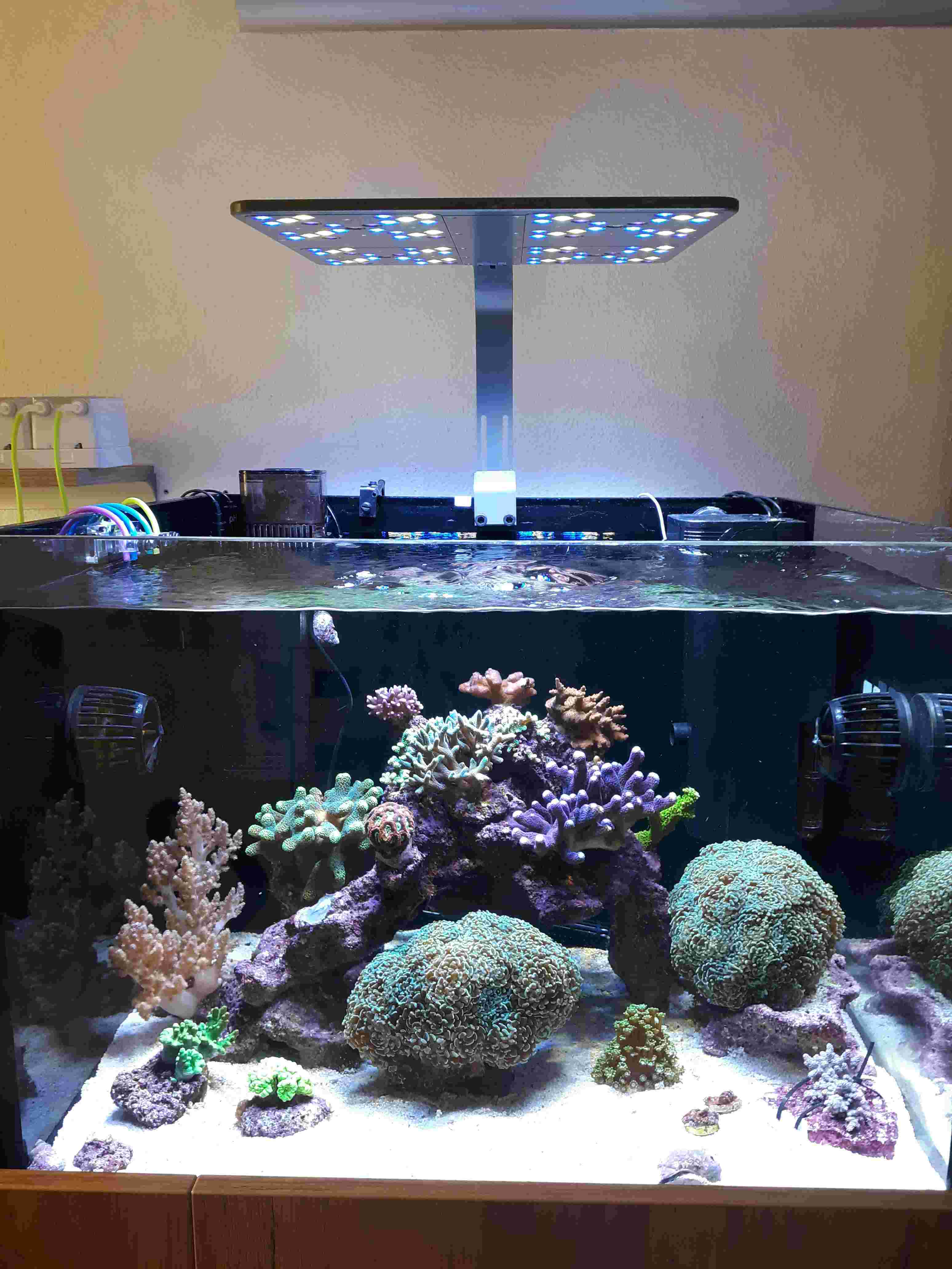 Aufgebaut und sofort mit Korallen und Krabblern aus dem großen Becken besetzt am 16.3.2026.