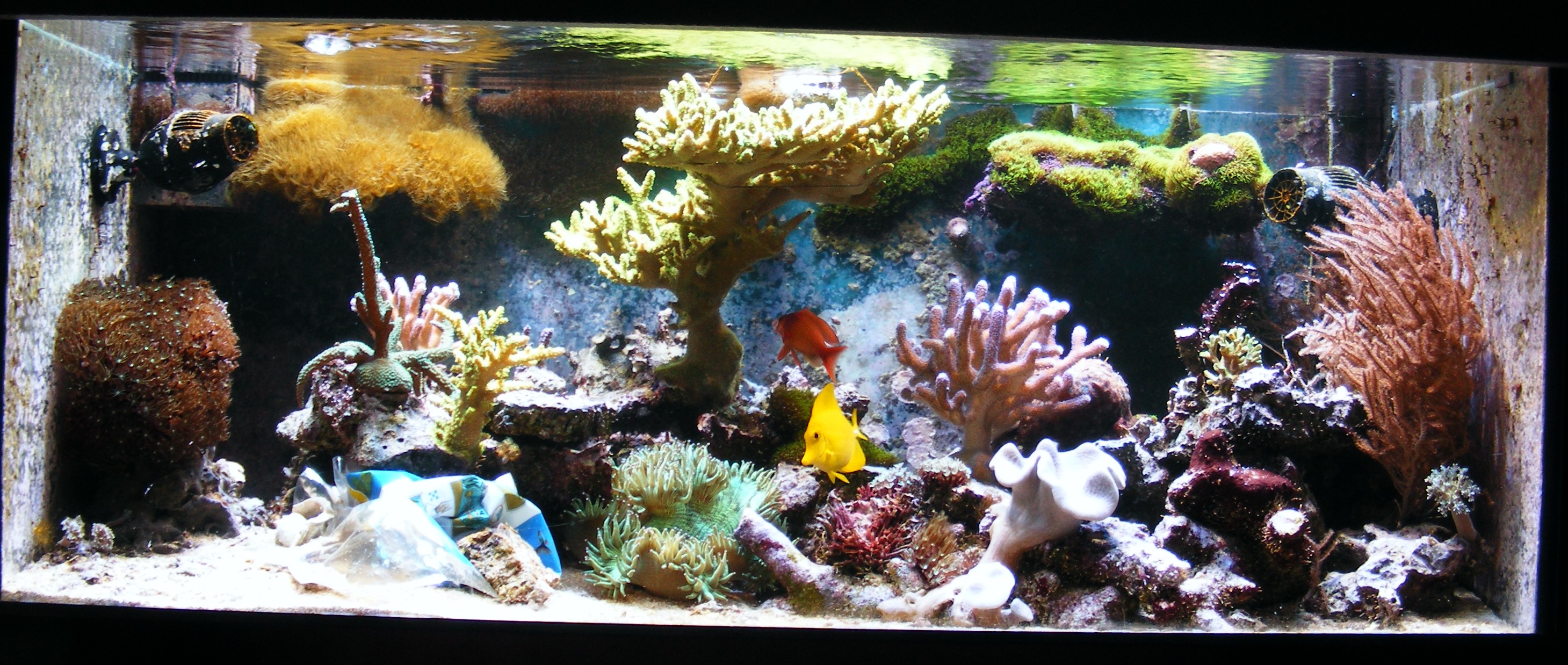 Angefangen habe 2004 mit einem 160 Liter Riffaquarium und mich über Lederkorallen und Weichkorallen weiterentwickelt zu hauptsächlich Steinkorallen, natürlich mit einigen Rückschlägen, was ja normal ist im Lernprozess. Seit 2010 habe ich üppiges Steinkkorallenwachstum mit vielen Ablegern, hauptsächlich Acropora-Arten.