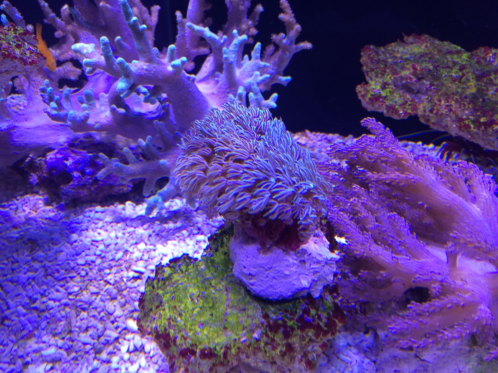 hier kommt eine aktuelle Ansicht von meinem Becken. Die Entwicklung geht weiter positiv voran und auch eins meiner Sorgenkinder (Seriatopora rechts neben Ablaufschacht) wächst und entwickelt sich.