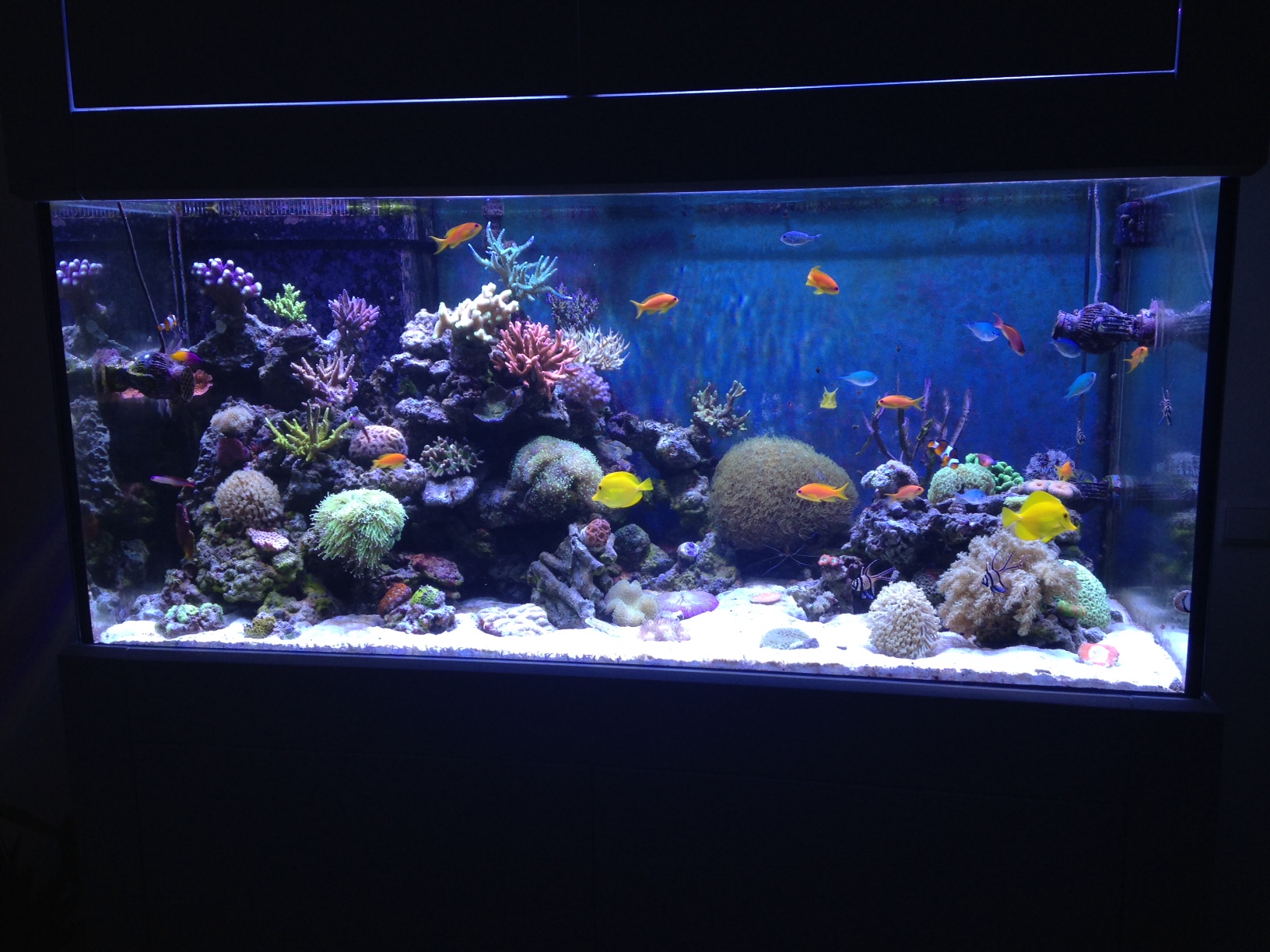 Natürlich habe ich dann auch einige Dinge optimiert, wie beipielweise die Lampeneinstellung laut Sangokai-Empfehlung (war vorher zu blaulastig), die Strömungspumpen. Und in den letzten tagen habe ich auch den Abschäumer auf sehr trocken eingestellt. Auch habe ich den Durchfluss reguliert.