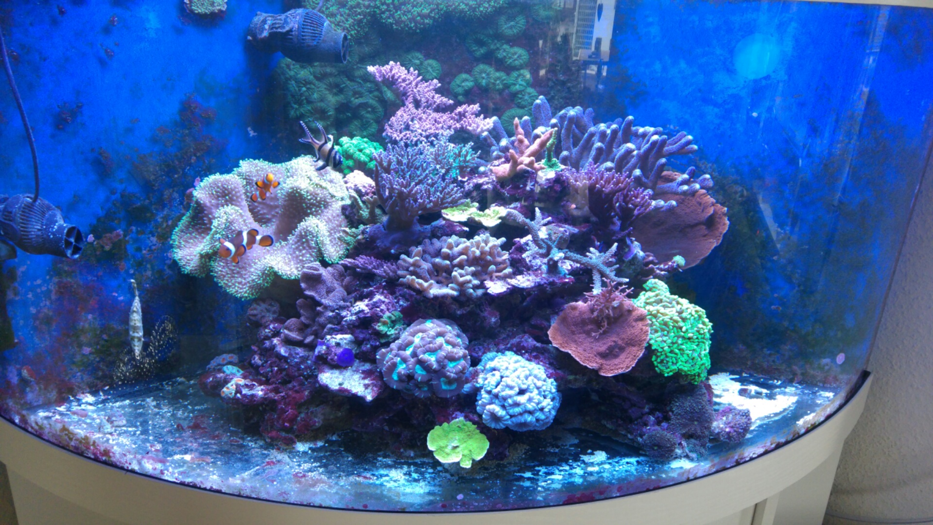 Strömung habe ich des öfteren geändert, mal mehr mal weniger, dann nur mit einer, dann mit drei Pumpen, direkt aufs Riff, oder nur umspült.