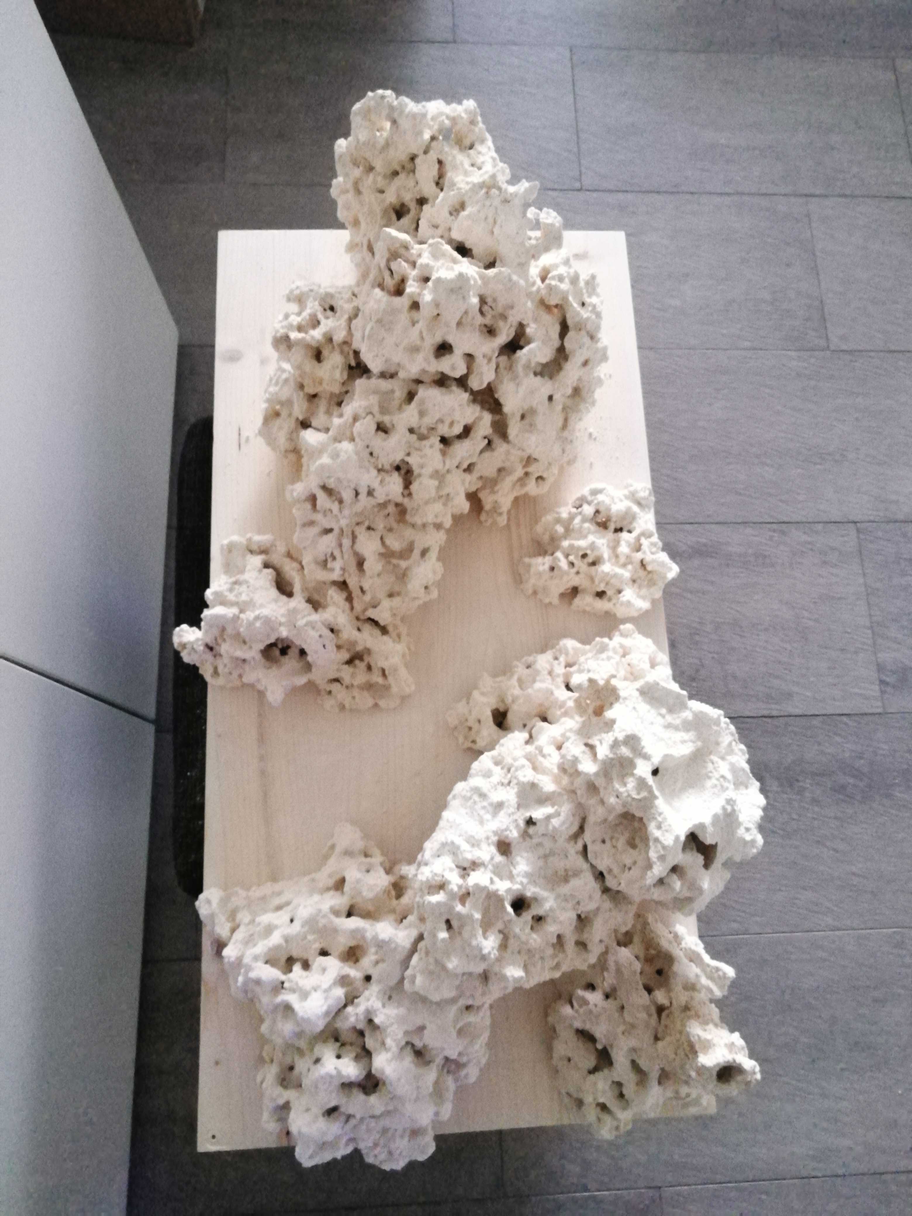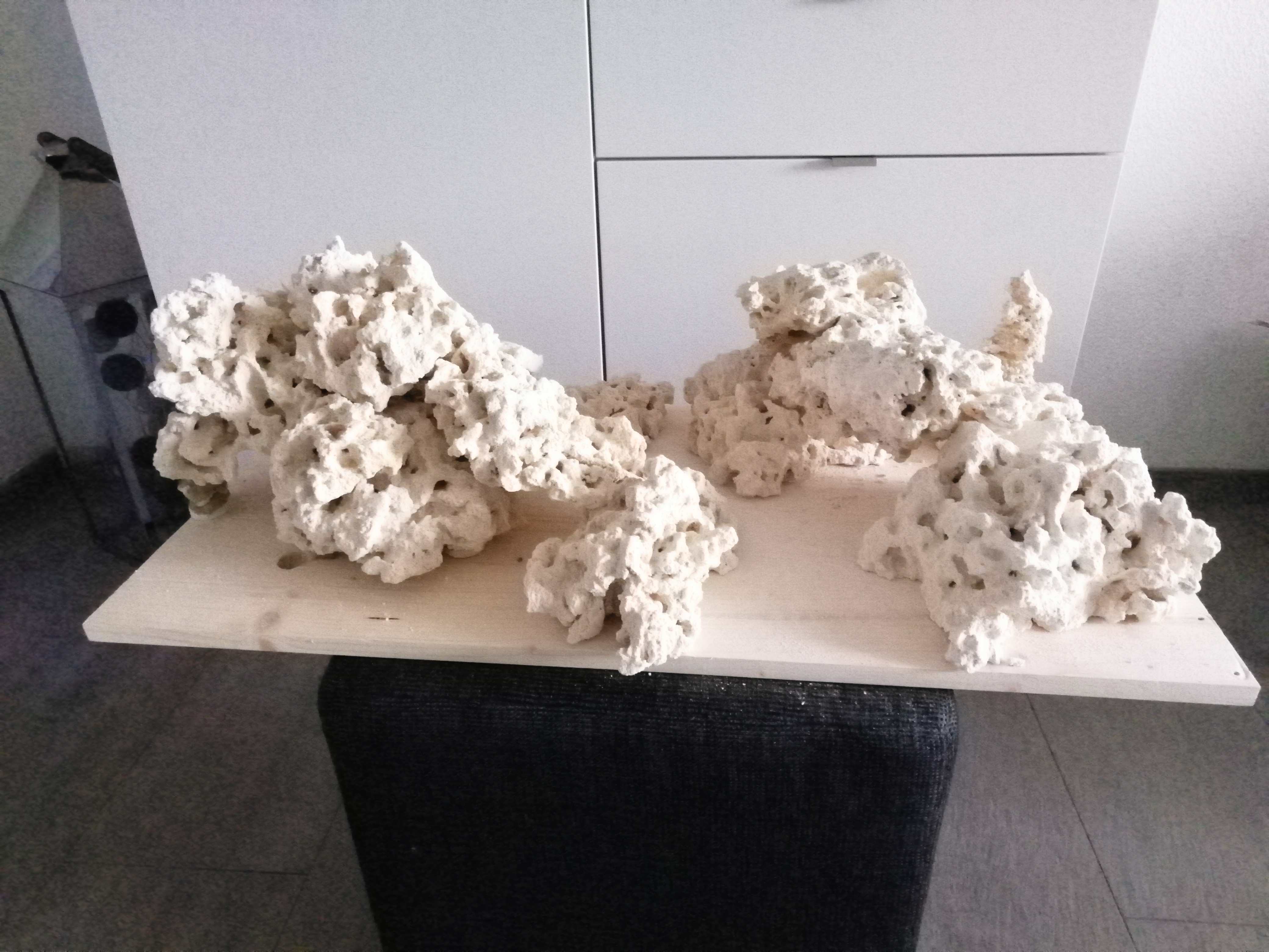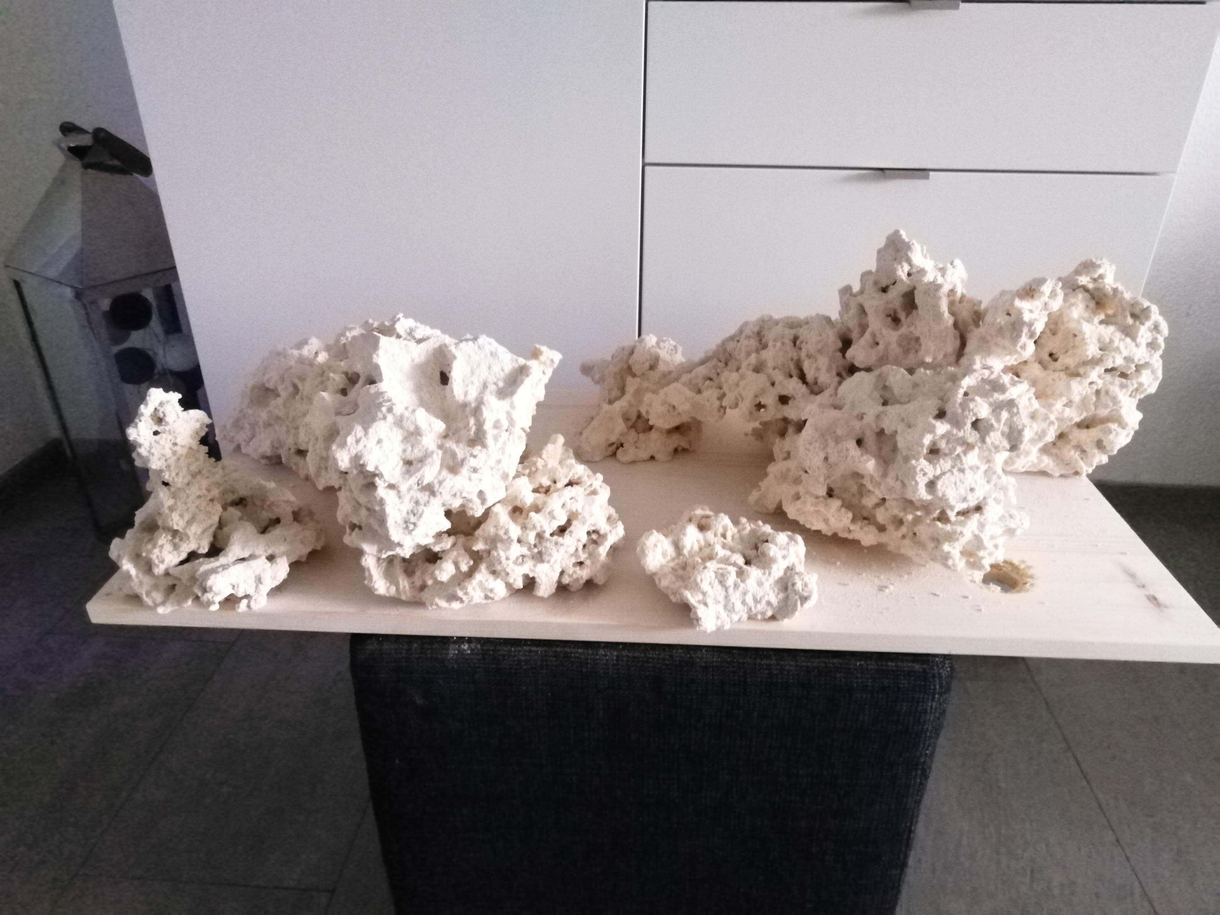 da das Becken noch auf sich warten lässt, habe ich mich schon einmal an den Aufbau gemacht. Die Platte ist 60 x 80 cm und die höchste Stelle vom Aufbau ist 23 cm hoch. Da das Becken 110 x 60 x 60 wird, sollte auf allen Seiten 10 cm Platz zum Putzen bleiben.