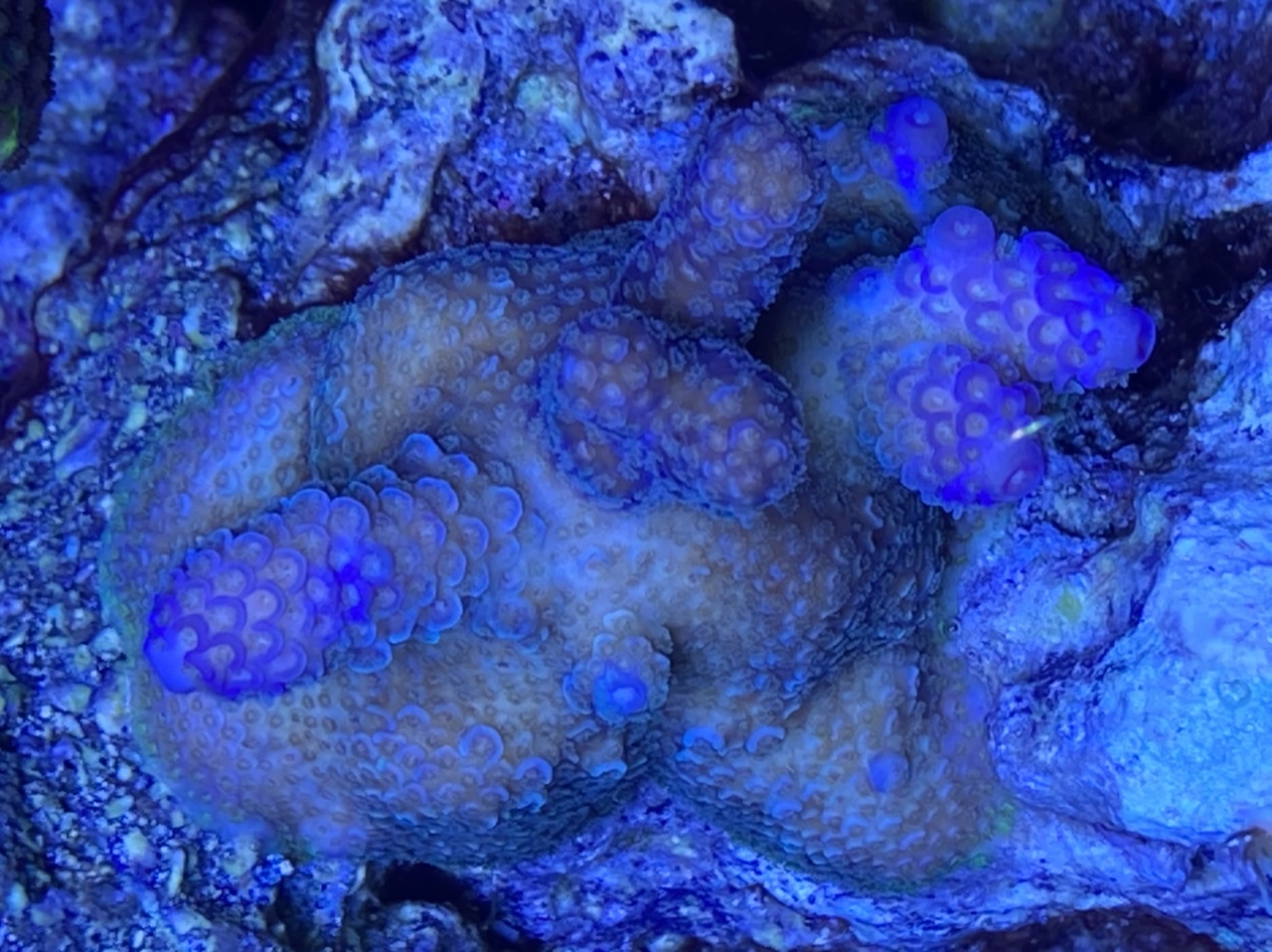 Jetzt ist weiter Geduld gefragt. Eine Acro will noch nicht so die Farbe zeigen, die sie eigentlich hat und insgesamt dürfen die SPS etwas heller sein. Aber solange alles wächst, bin ich zufrieden.