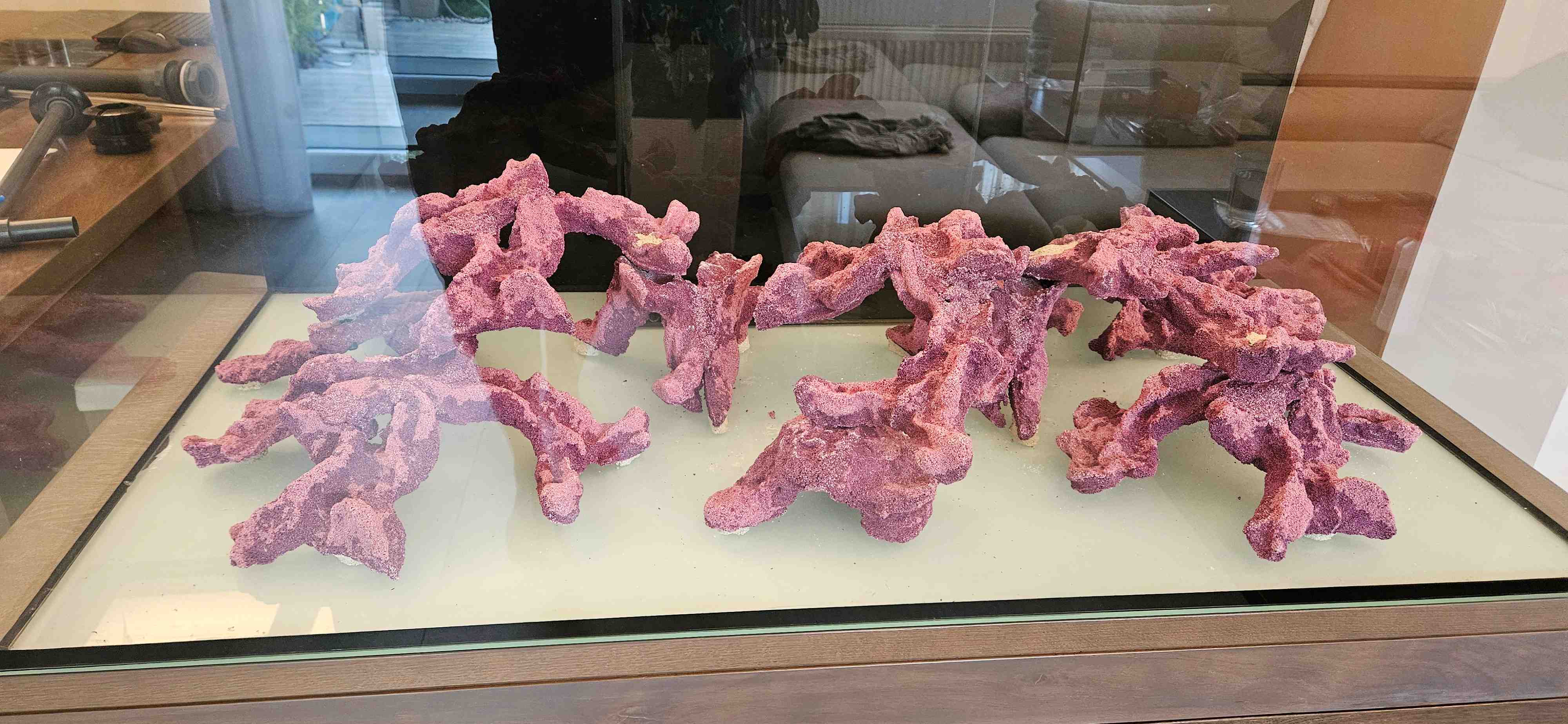 Die Videos von Jonas und Norbert sind mir bekannt und die gefallen mir auch gut. Aber die Epo Reef Steine sind einfach zu "groß" wenn ich das immer im Video mit den Händen vergleiche. Wie gesagt eine 40er Tiefe hab ich und da würde Jonas auch zurecht sofort mit mir schimpfen, das die Abmessung des Aquariums falsch sind. Aber das Aquarium ist fix und das auch aus ästhetischen Gründen in diesem Raum.