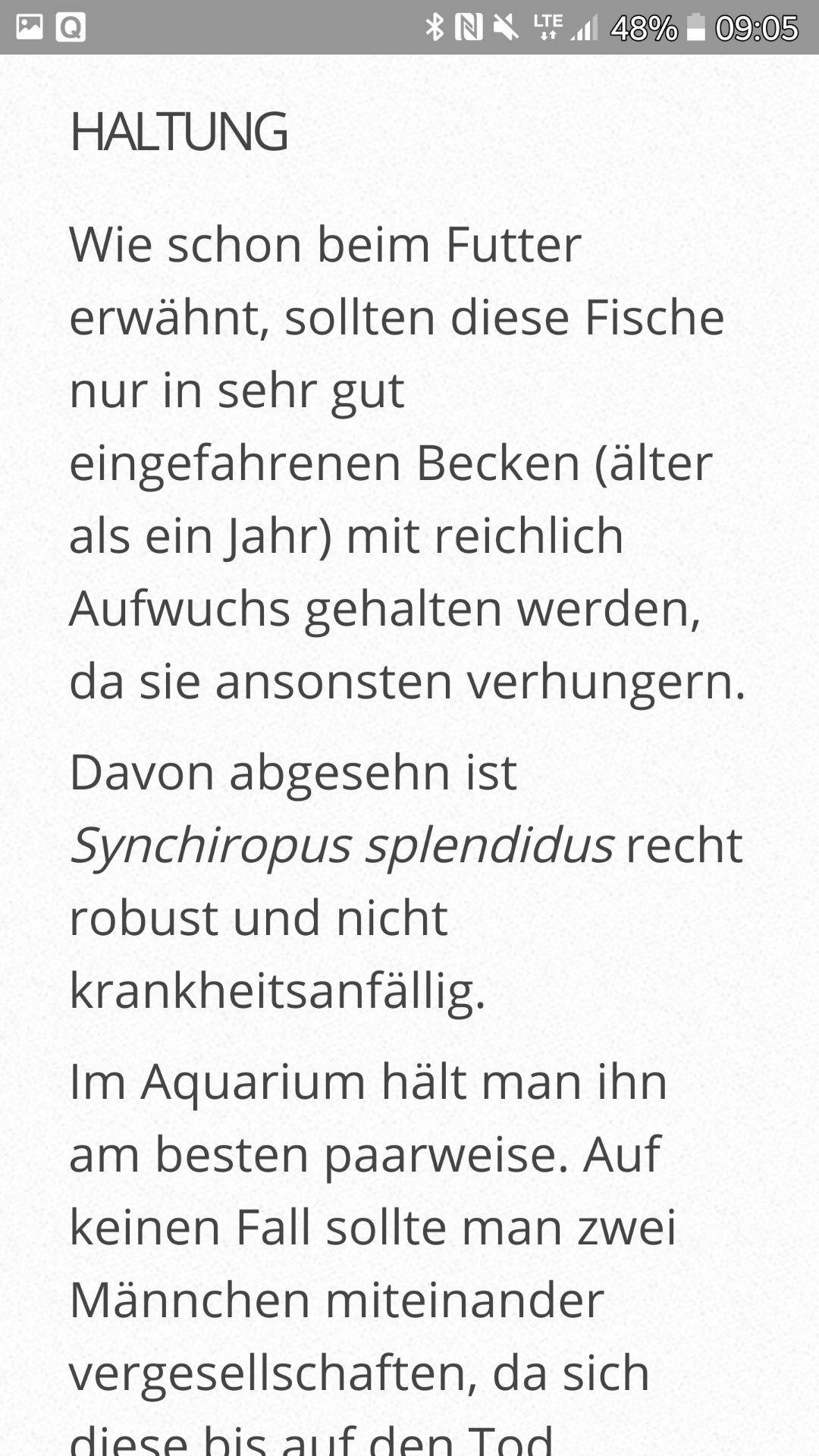 Wegen dem Mandarin mach ich mir halt so meine Gedanken....wenn er nicht futterfest ( also Frostfutter )ist kann er verhungern. Das will ich natürlich nicht.