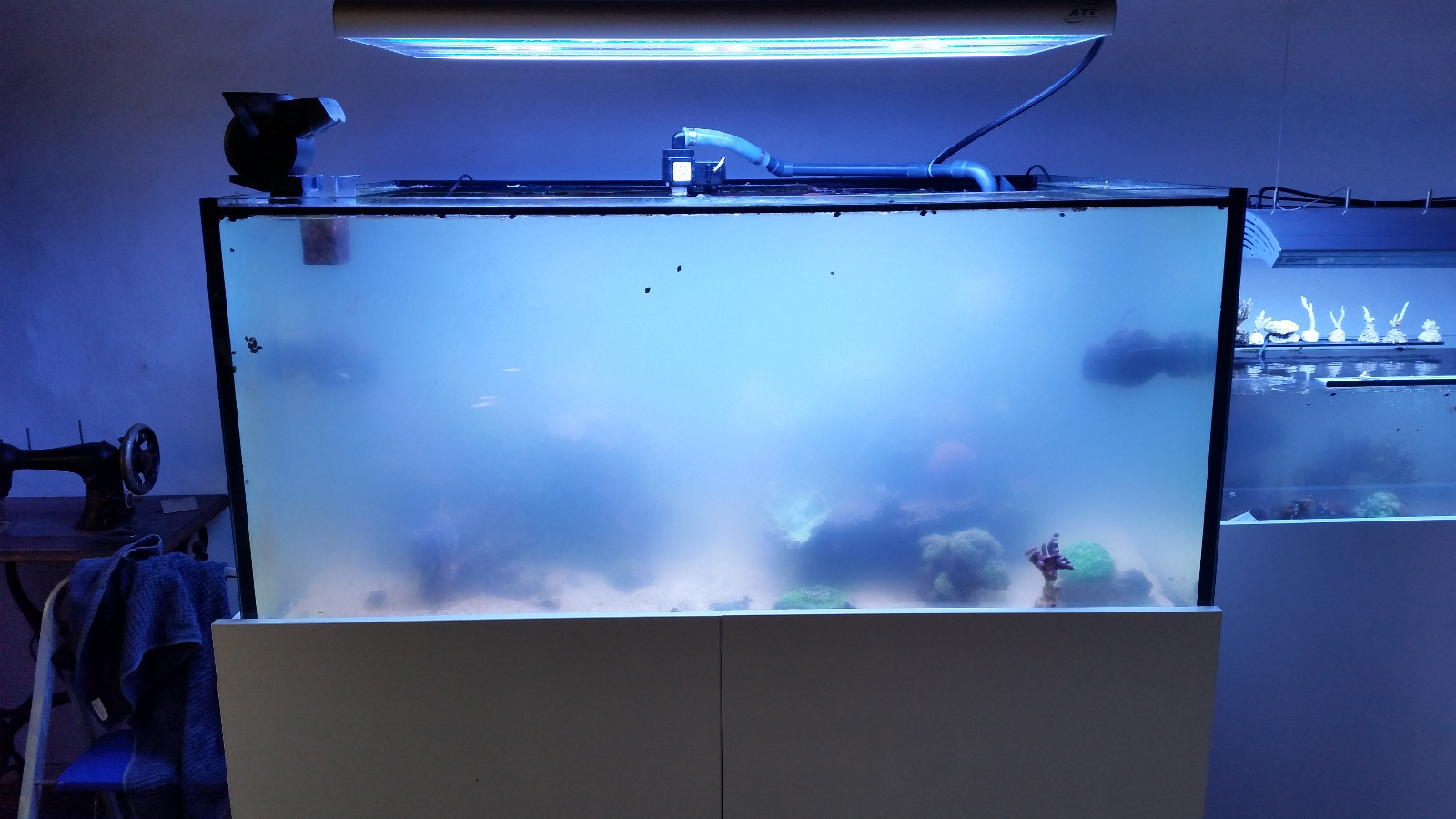 Aktuell (nach 2 Tagen) sieht es noch sehr schlimm aus. Das Wasser ist sehr trüb so das man nicht viel sieht. Ich habe alles was abgestorben ist und alle toten Fische die ich gefunden habe rausgeholt. Abschäumer läuft auf Hochtouren und muss mehrmals täglich entleert werden. Kohle läuft in einem Wirbelbettfilter mitt und ich werde in den nächsten Tagen noch einen 300 l Wasserwechsel machen und dabei den Bodengrund ordentlich mit der Mulmglocke reinigen. Werde aber noch so lang warten bis das Wasser wieder klarer ist, damit ich besser sehen kann wo Gammelecken oder noch tote Tiere ligen.