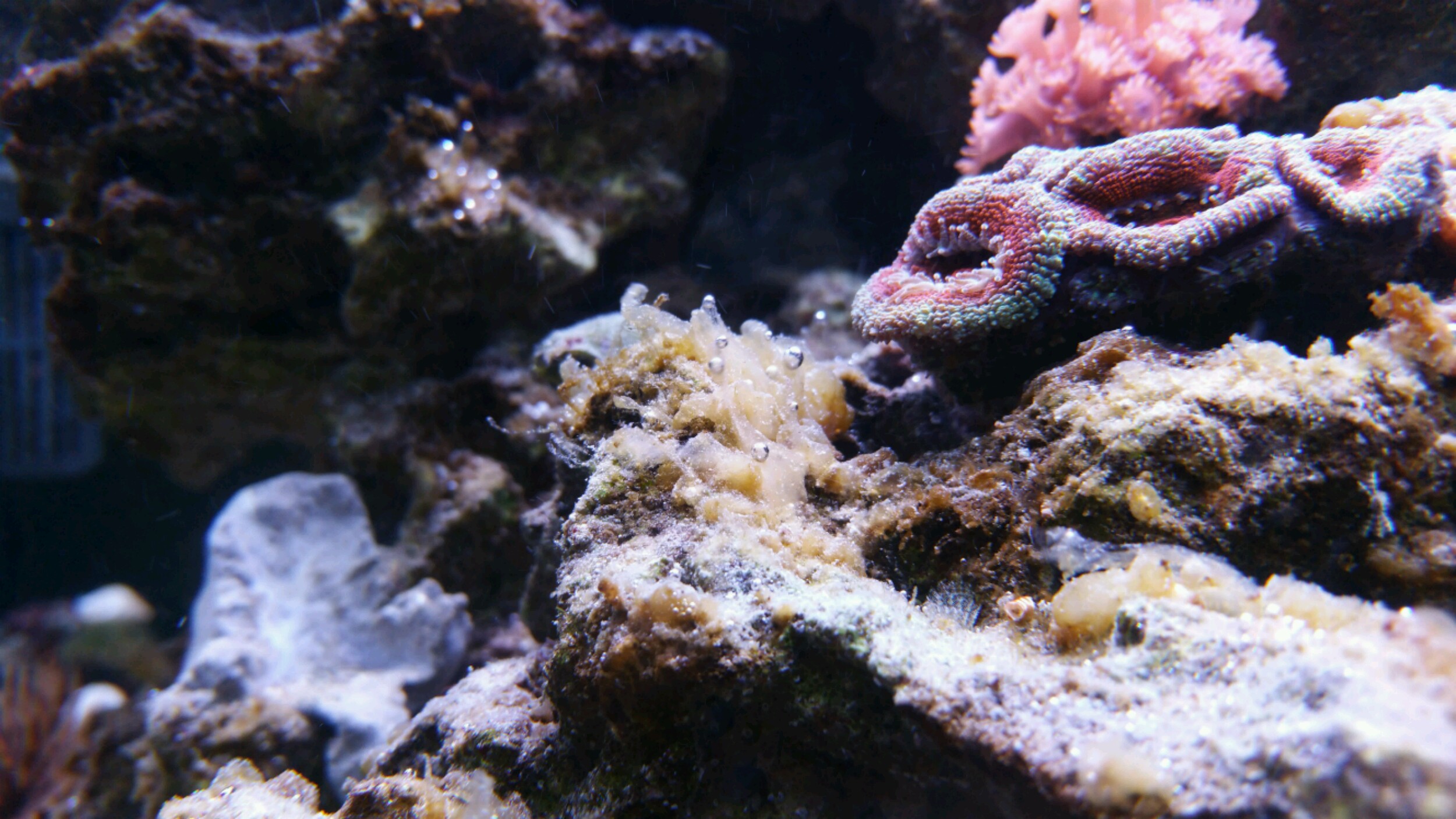 ich habe gerade mal diese beige/bräunlichen Beläge auf meinen Steinen mikroskopiert, es wird zwar weniger, aber wäre ja trotzdem interssant zu wissen was es ist, Nick vermutet das es eine Cyanoform ist...