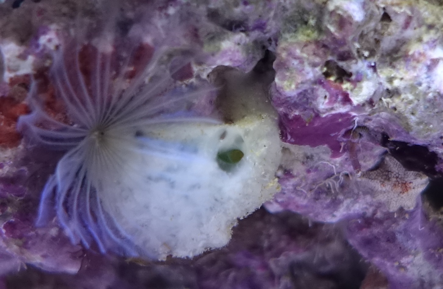 ich habe die auch alle - anfangs habe ich mir Sorgen gemacht, weil Die sich bei mir auf schattigen Ablegersteinen von zB Acantastrea breit machen. Die kamen alle recht zeitglich und immer in der Nähe von Korallen und ich war ziemlich besorgt, dass da was schlimmes passiert. Der "Stamm" einer Caulastrea ist komplett rosa bei mir, das Gewebe an sich und diie Koralle wird aber nicht bedrängt und beiden geht es seit Monaten prächtig.