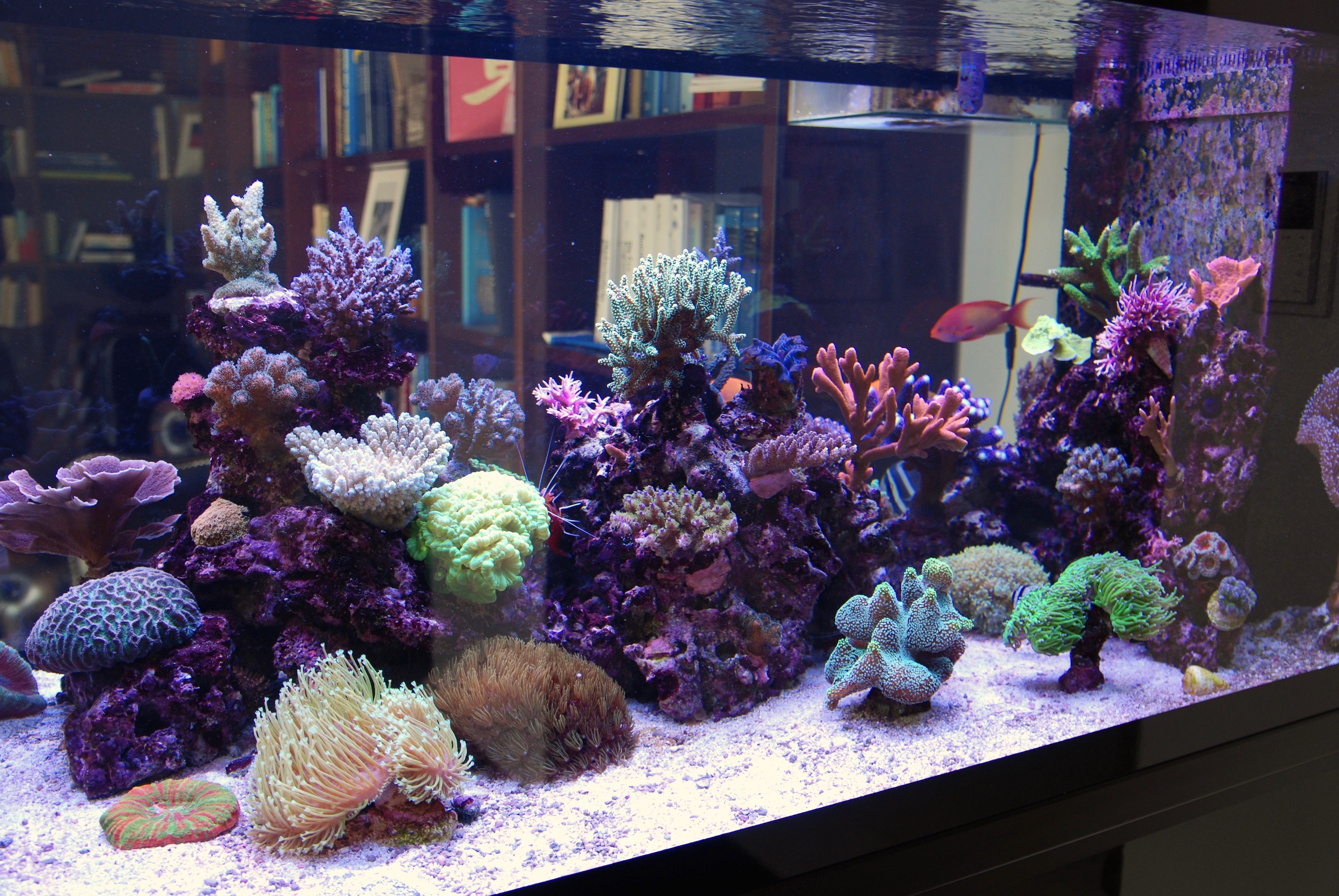kurzes Update von meiner Seite. Trotz der kurzen Zeit seit meinem letzten Update hat sich einiges getan. Das Wachstum ist nachwievor sehr gut. Einige Korallen habe ich umgesetzt und ein paar neue Tiere sind auch eingezogen. Das Becken steht nachwievor sehr gut, auch wenn ich zur Zeit mal wieder einige Cyanos auf den Steinen habe.