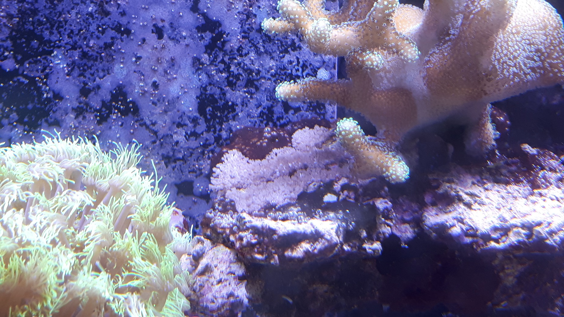 Ich habe seit neuestem eine neue Koralle (wahrscheinlich irgendwie eingeschleppt). Das Zeug überzieht alles und schaut ähnlich wie Xenien aus, pumpen jedoch nicht. Ist wie ein Teppich der sich langsam und stetig immer weiter ausbreitet.