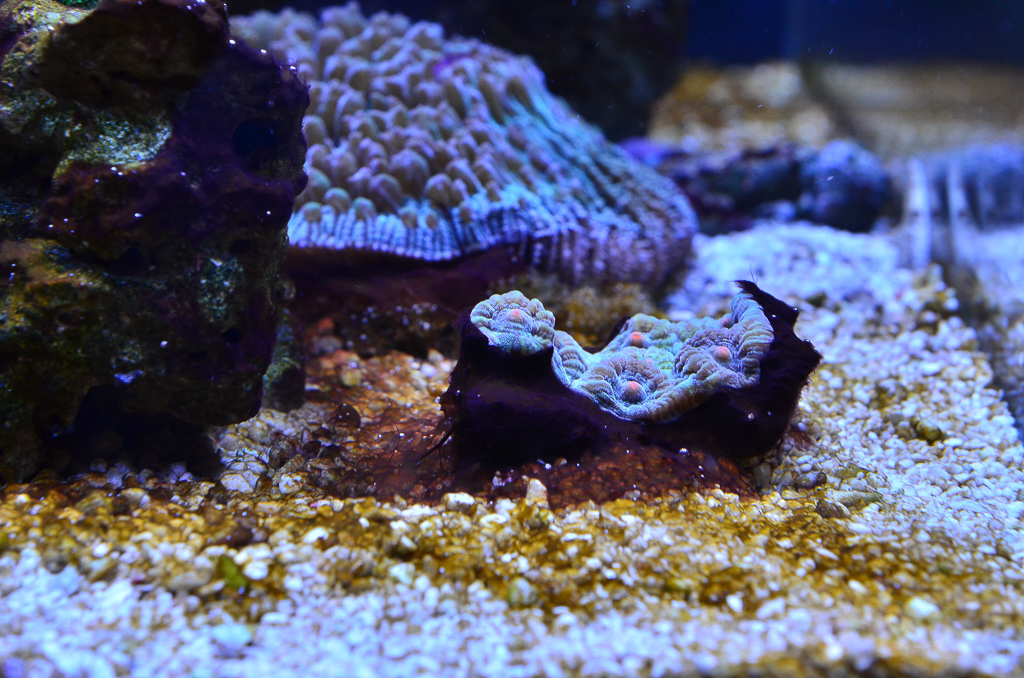 Auch meine eigentlich knallig rote Goniopora ist sehr farblos. Sie ist zwar rot, aber kein Vergleich zu vergangenen Tagen.