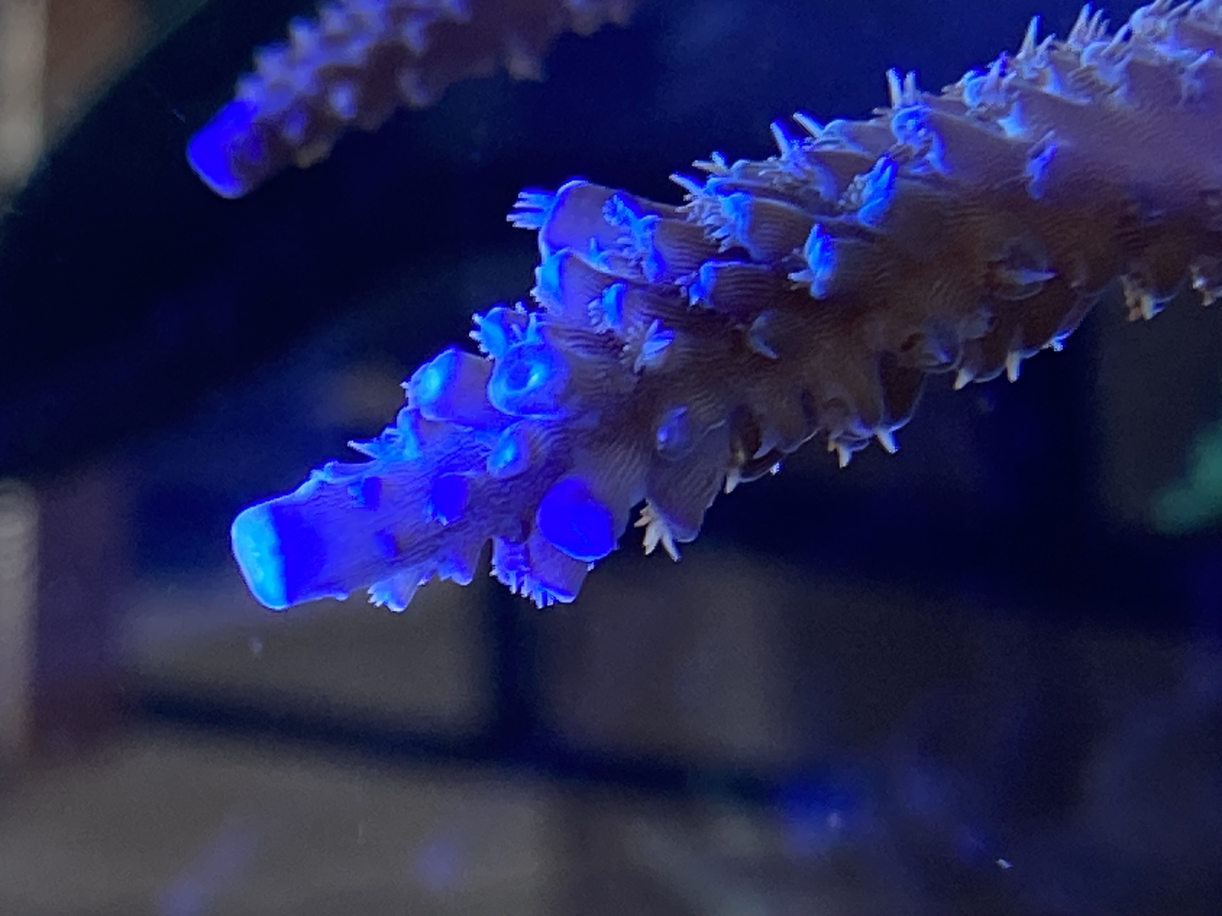 Heute war der dritte Tag mit der doppelten #1 Nano-Basic…das Wasser wurde heute etwas trüber, eventuell durch Bakterioplankton, und die Polypen waren mehr eingezogen, die grüne Hornkoralle auf der Rückwand ging widerwillig auf…