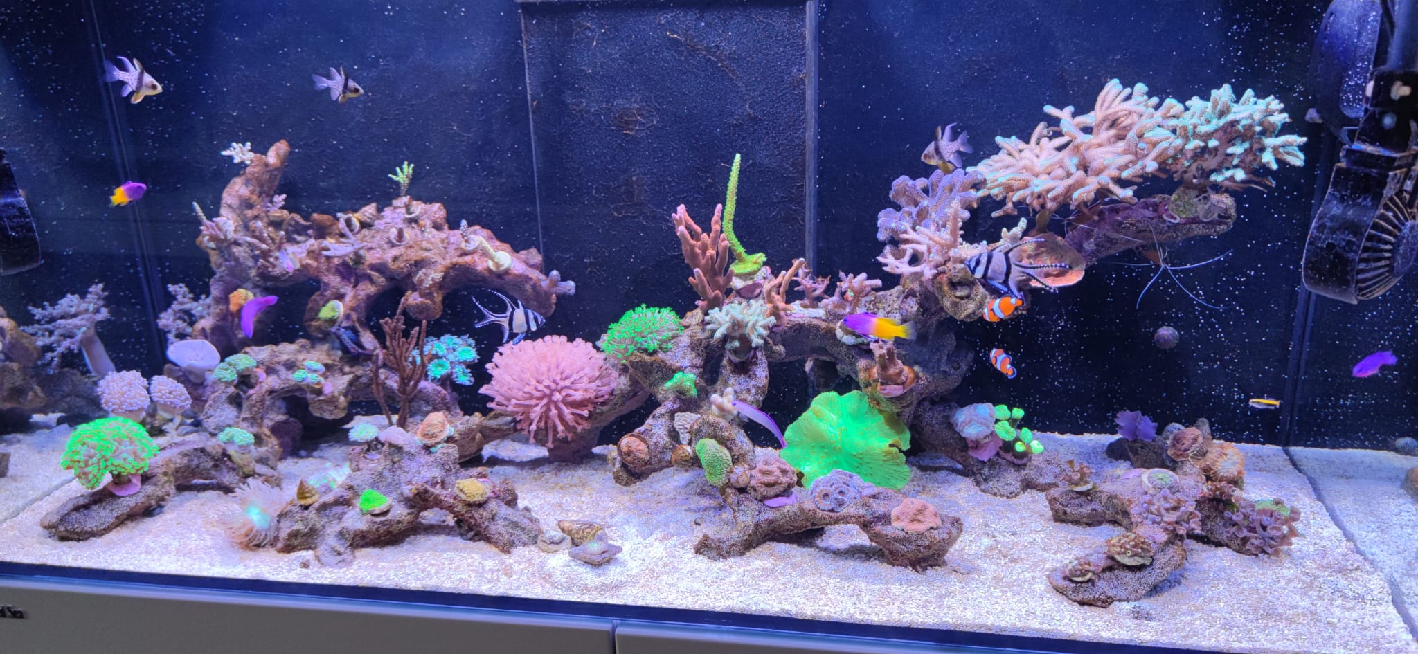 Habe nun 3 Ecotech Marin Radion XR15 G6 über meinem 120cm Becken 20cm über dem Wasser bei einer Tiefe von 48cm hängen.