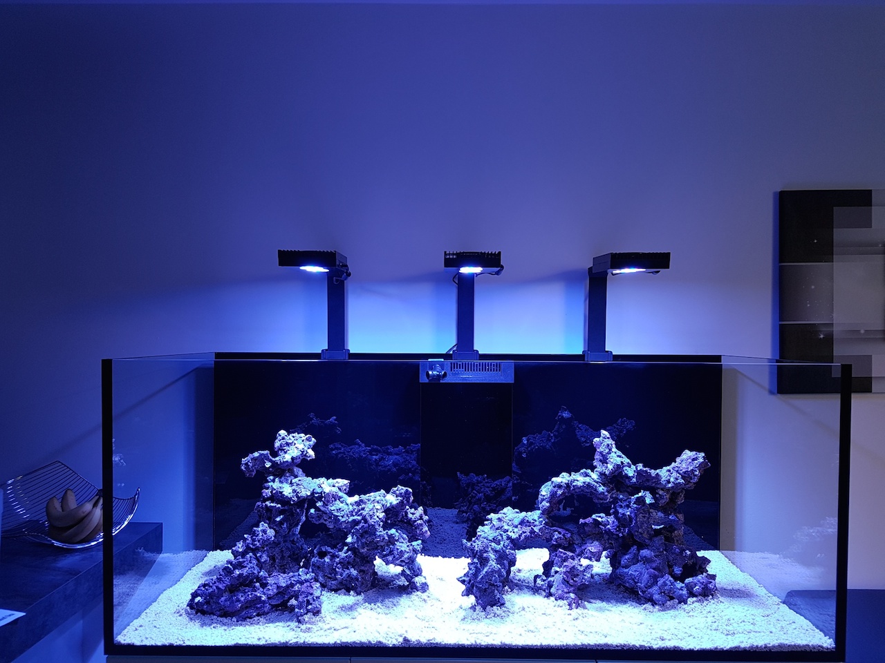 Heute wird mal das Wasser ausgelassen, alles gut ausgewischt und dann mal die Technik installiert. Osmosewasser wird aufbereitet und der Sand seit eingien Tagen in Osmosewasser gewässert.