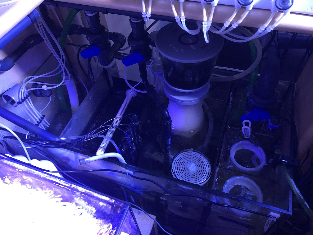 Filterung: 2x Filtersocke, 1x Knepo Double für Kohle und Adsorber, 25 Liter Algenrefugium