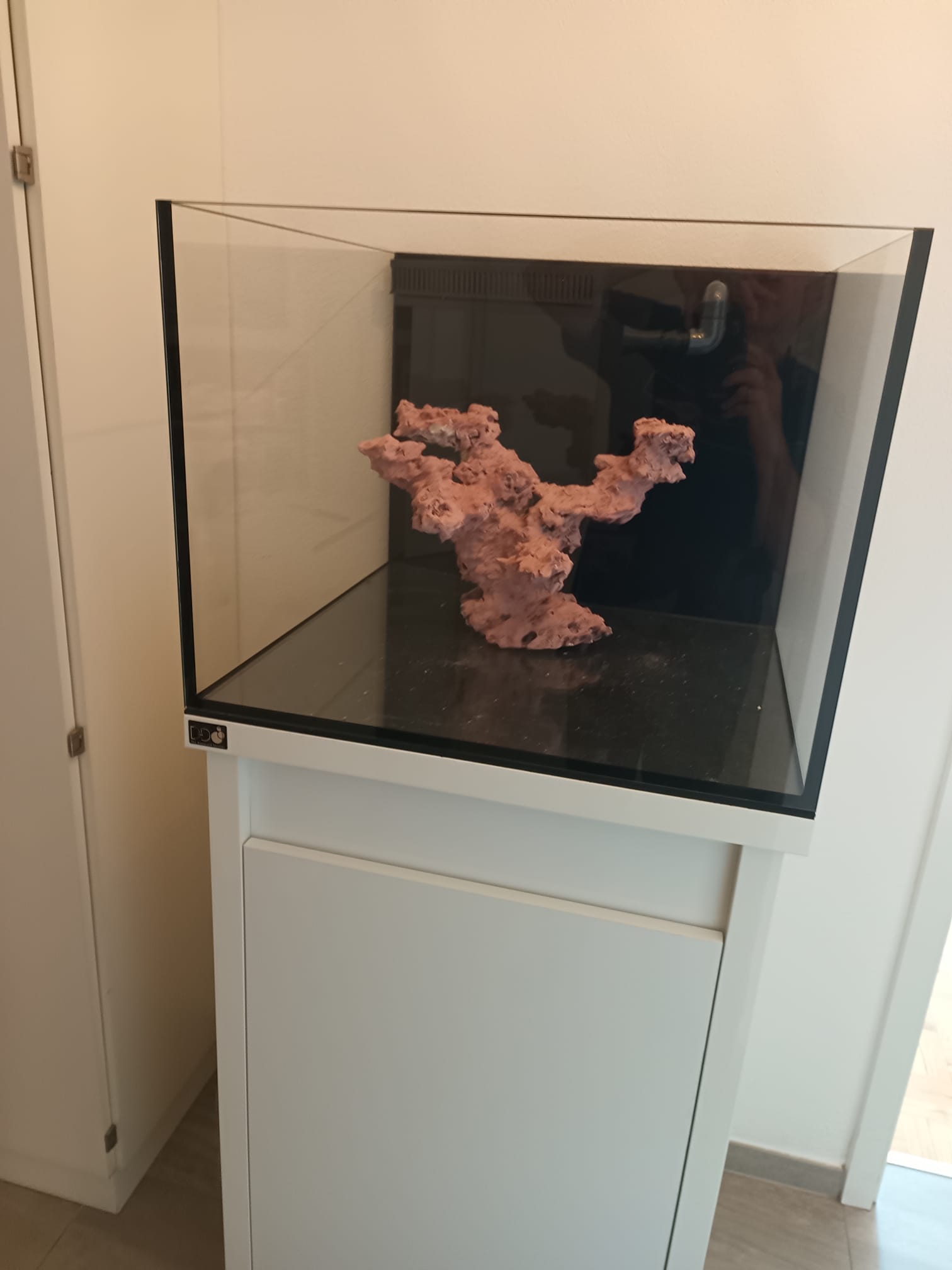 Mein Plan war es, das Becken mit dem Gestein vor dem Start mit Osmosewasser zu füllen, die Technik laufen zu lassen und das Prozedere zwei oder dreimal zu wiederholen. Die Idee dabei ist nicht nur das Gestein sondern auch das Becken und die Technik von eventuell vorhandenen Rückständen zu befreien und auch zu testen ob alles Dicht ist und alles funktioniert. Nach dieser Prozedur würde ich den Sand einbringen, wider mit Osmosewasser füllen und dann im Becken aufsalzen.