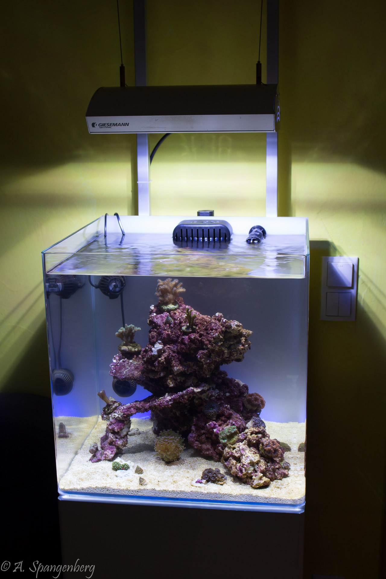 Ansonsten wird sich Dein Becken sicherlich gut entwickeln. Schaut gut aus. Wirklich sehr hübscher Aufbau. Ich würde Dir dazu raten, dass Du das Wasser frühzeitig mal mit einer Fauna Marin economy Analyse checken lässt, damit Du Mangelsituationen, die sich z.B. direkt aus dem Meersalz ergeben, frühzeitig entdecken kannst (Kalium-, Bor- und Iodmangel sind hier häufige Probleme).