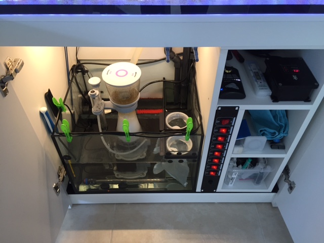 Das Becken ist mit 20 Kg Lebendgestein besetzt ( Whitecorals ). Der Bodengrund ist der ATI Fiji White Sand mit der Körnung 0,3-1,2 mm und wurde mit einer Schichtdiscke von 2-3 cm eingebracht. Geimpft wurde das Becken mit dem Produkt Nyos Zero in Verbindung mir Nyos Bac. Da ich noch in der Einfahrphase bin möchte ich mich solangsam die Zeit nutzen und mich Schlauch machen wie ich mein Becken in Zukunft Pflege. Ich höre hier nur gutes von dem System Sangokai. Vielleicht bekommt man ratschläge hier die einem Helfen.
