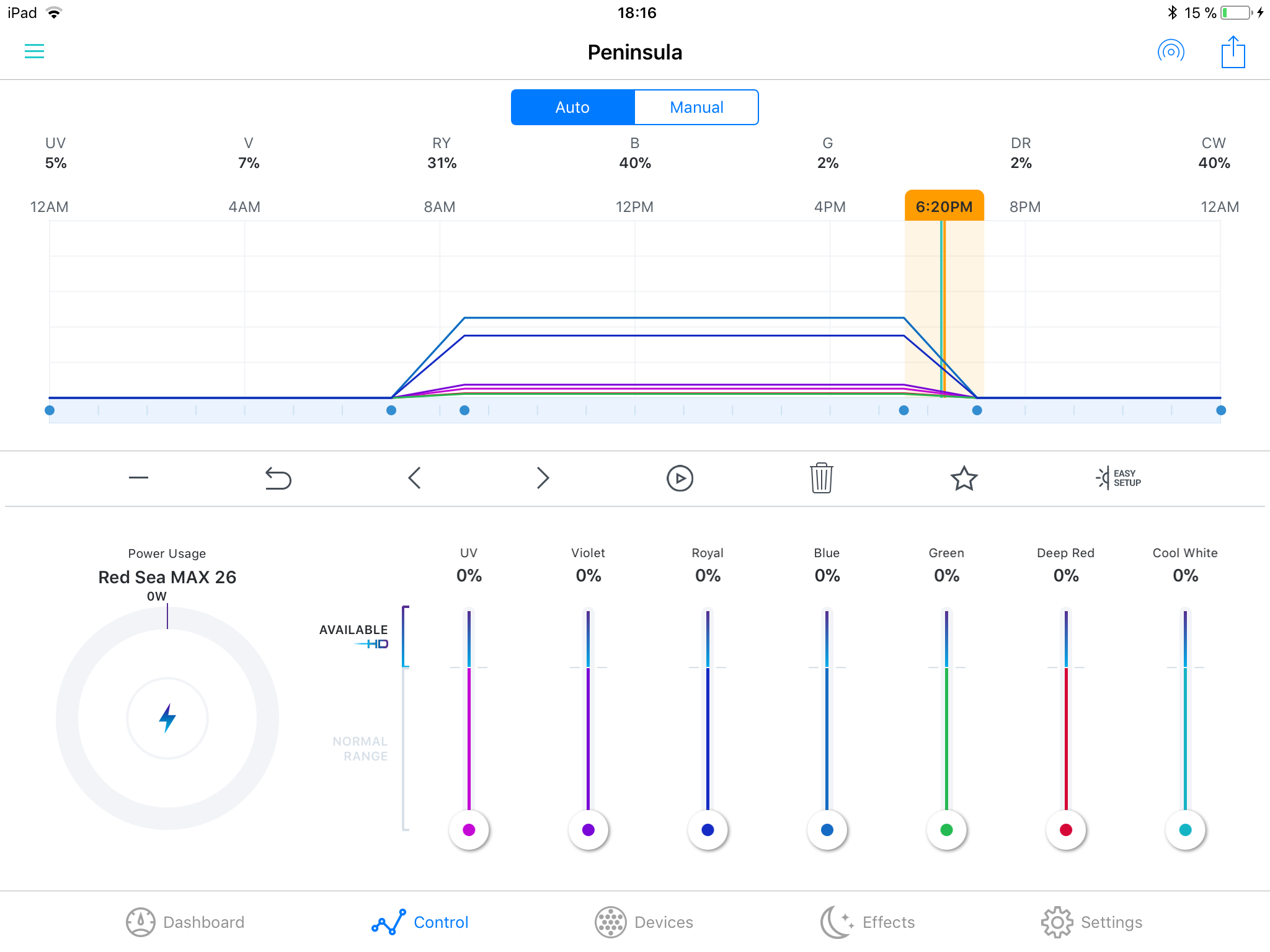 Meine Lampen fahren nach einschalten 1.5h hoch bis zur eingestellten Maximalleistung und fahren Abends genau so wieder runter. Insgesamt sind es 12h Beleuchtungsdauer.