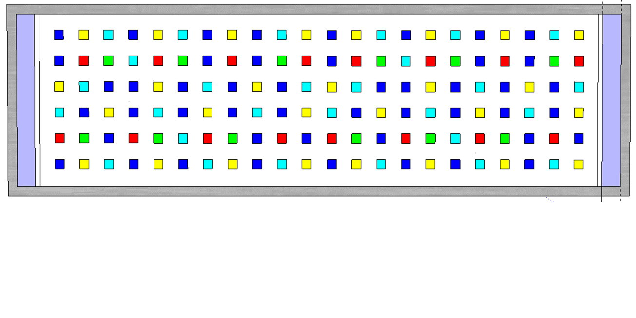 Die Platte ist etwas schmaler als der Rahmen, um an beiden Seiten einen offenen Bereich zu erhalten, durch den die warme Luft nach oben ziehen kann. Schlussendlich hatte die Platte folgende Maße: 1240 x 367 x 4 mm. Diese Fläche sollte gleichmäßig mit LEDs bestückt werden. Unter Beachtung der Anschlussmöglichkeiten am Controller waren 132 LEDs auf der Platte zu montieren. Als Abstand wurden hier 35 mm gewählt.