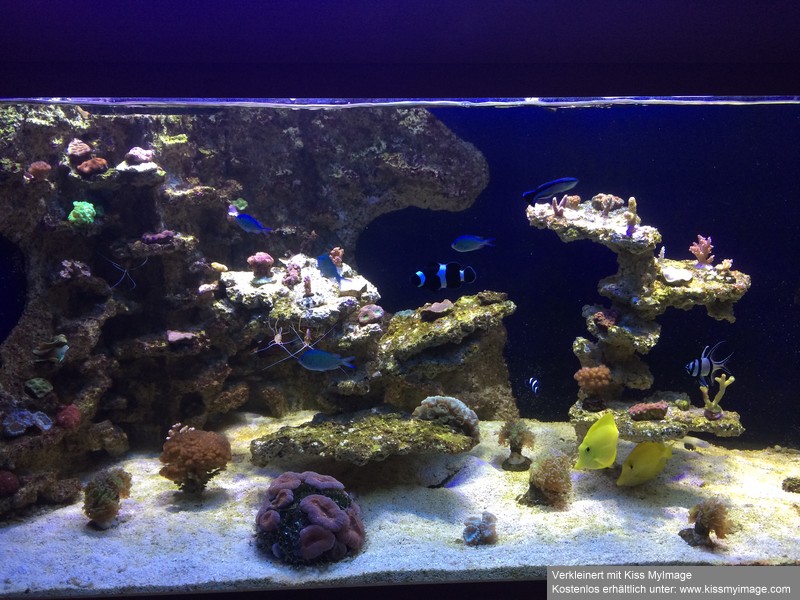 Beleuchtet wird mit LED`s 8 x 10 W Blau und 16 x 10 W kaltweiß 20000 K und 2 x T5 39 W weiß .Wobei die blauen LED`s bei 60%