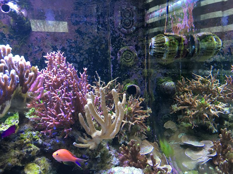 schaut doch gut aus. Bei der Fülle und Größe der Korallen, ist es durchaus auch normal, dass da SPS unten weiß werden können.