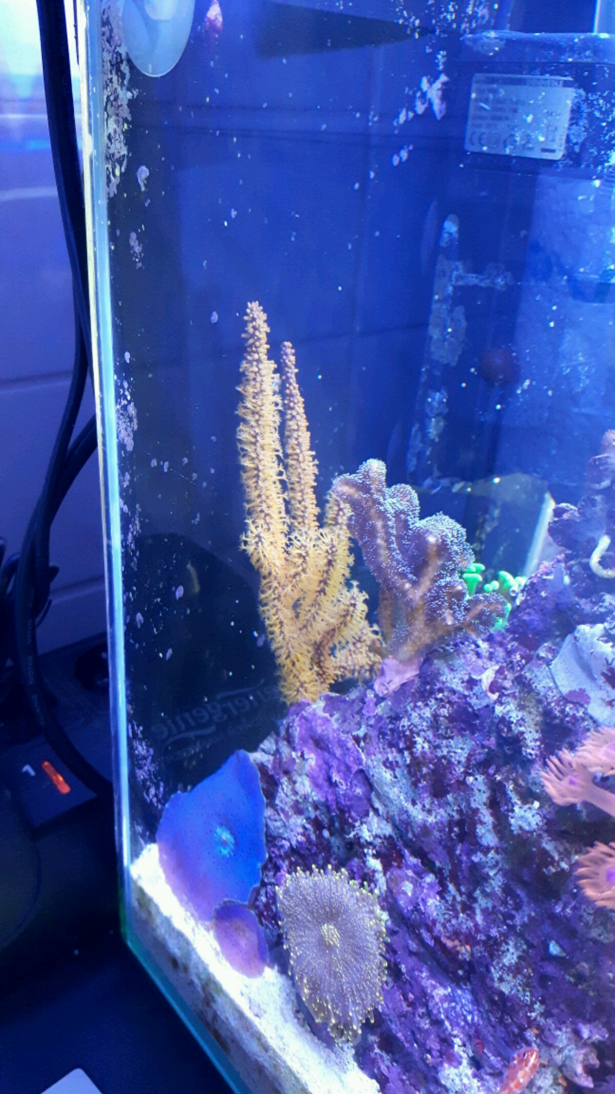 Nach 2 Stundenbegann sie sich leicht zu öffnen, sie bewegt sich keinen Millimeter (wahrscheinlich gefällt ihr der Platz) wurde heute 4 mal mit zooplankton und lopstereier gefüttert und ist mittlerweile voll offen.