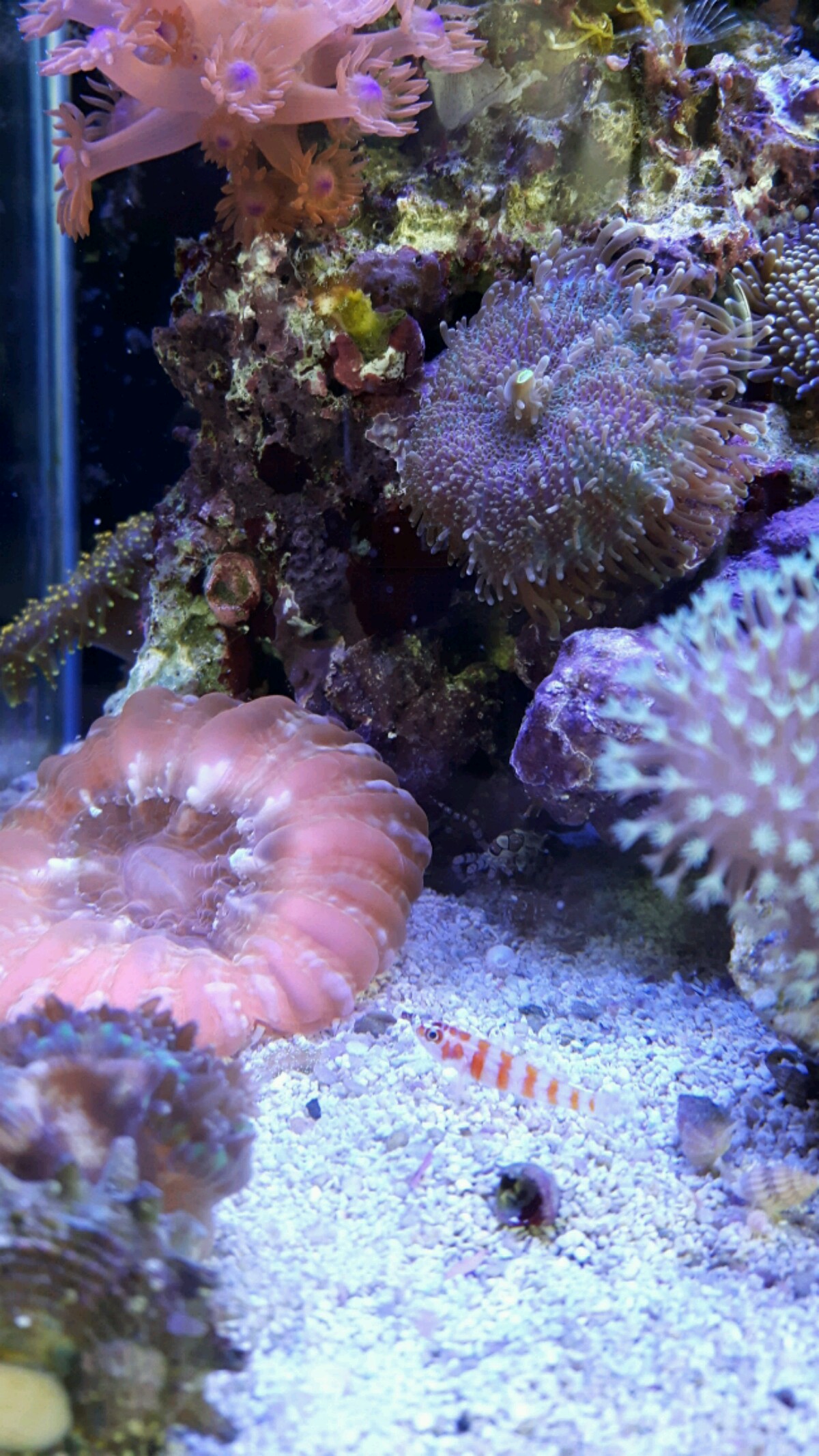 Zuerst War die wanderkoralle ja in meinem grosses Becken. Bild unten. Am Anfang stand sie ganz gut und lief fleißig durch die Gegend. Ich liest sie also in ruhe.