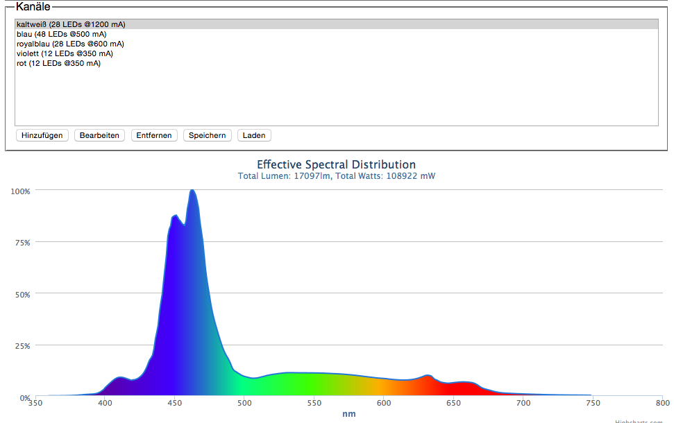 Sorry, das Korallenwachstum. Beleuchtung hatte ich (glaube ich) ganz am Anfang mal hochgeladen, Sandy von Nanoriffe.de hatte die mir mal konfiguriert, hier noch mal ein Screenshot So wirklich Rotlastig ist das Becken m.E. nicht, sind nur 12x3W LEDs die minimal mitlaufen.Jörg Kokott hat geschrieben:Welches Wachstum ist stark zurückgegangen?