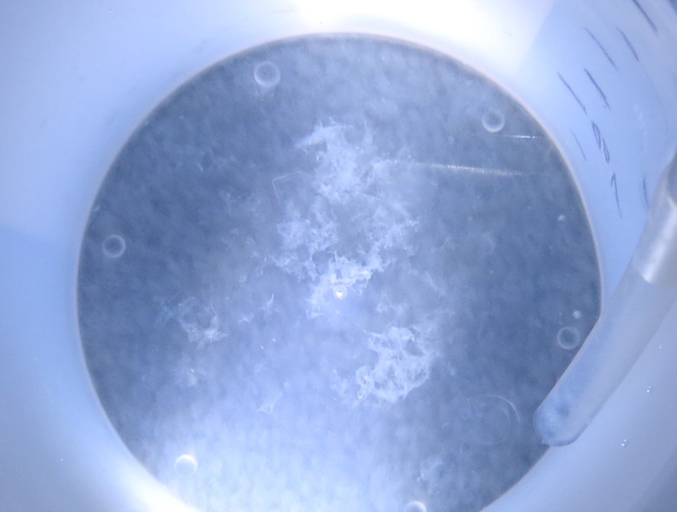 Jetzt habe ich die Lösungen in die Vorratsbehälter nachgefüllt und dabei festgestellt, dass immer noch Ausfällungen in der Lösung sind.