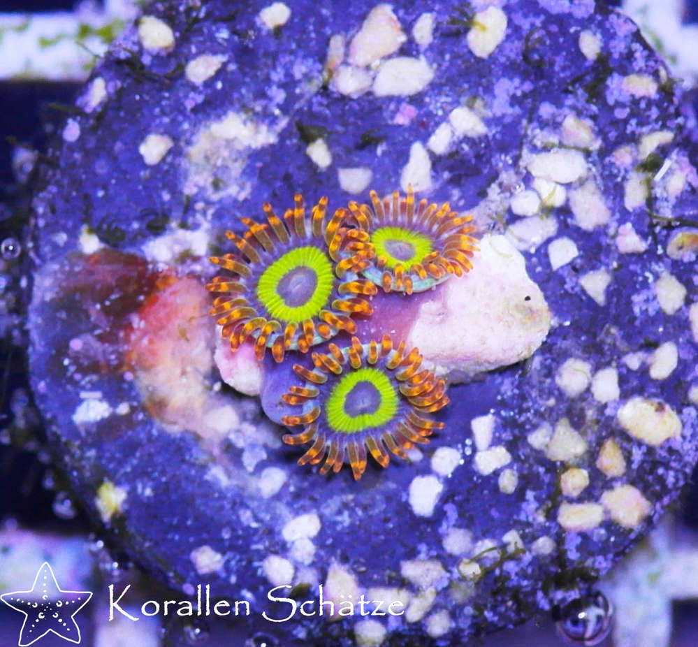 Ich hoffe Du wirst die Korallen sehen können... ich finde die Ableger zu klei...sind winzige Ableger. Ein Raster ist 1,5cm der Platte im Hintergrund. Viel Erfolg.