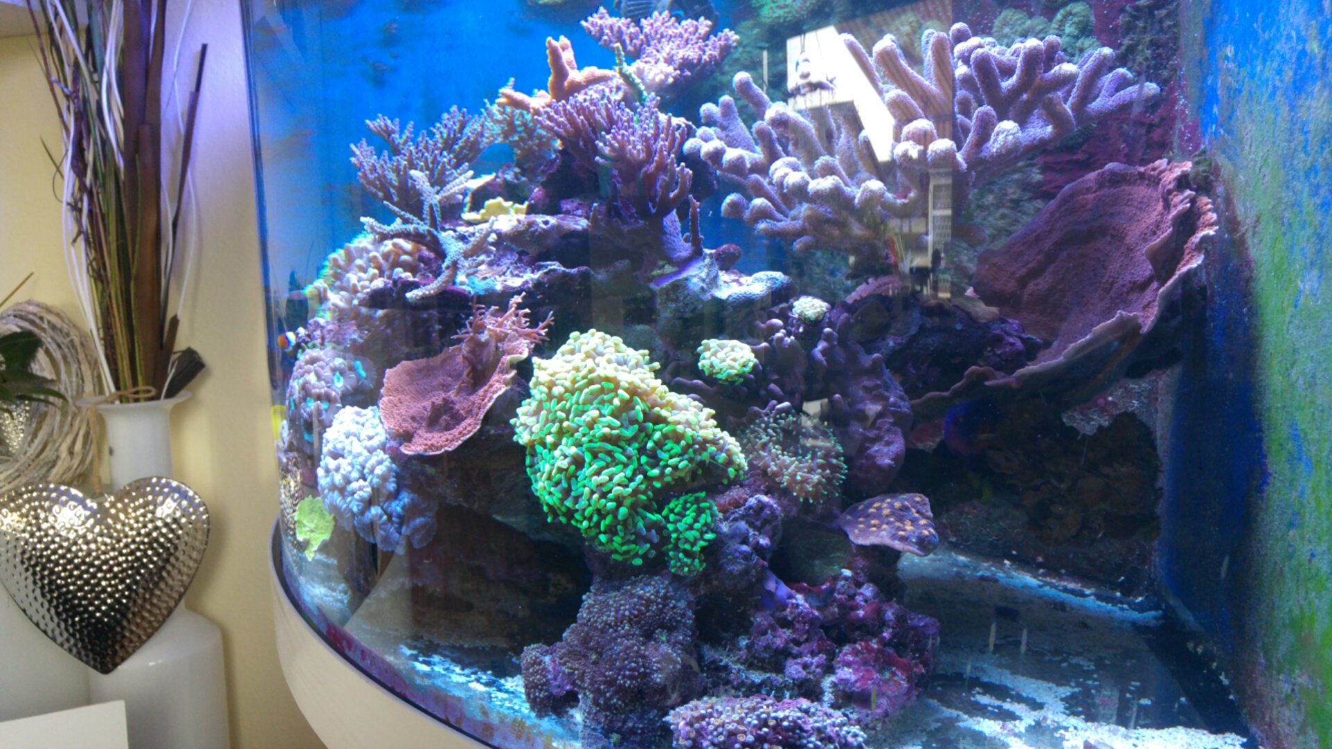 Strömung habe ich des öfteren geändert, mal mehr mal weniger, dann nur mit einer, dann mit drei Pumpen, direkt aufs Riff, oder nur umspült.