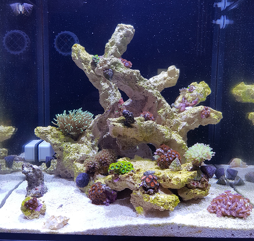 Und last but not least kannst du den Korallenbesatz noch weiter erhöhen. Die bisherigen Arten sind jetzt zum Start nicht unbedingt die schnellwüchsigsten. Da kannst du schon ein paar SPS (falls gewollt) zusetzen.