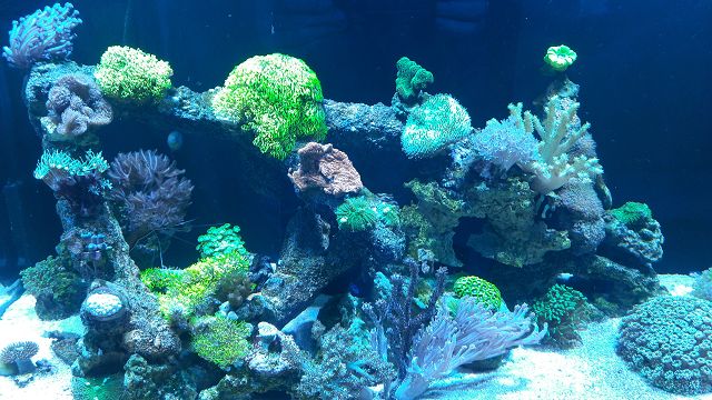 Also die Korallen stehen gut bis sehr gut. Man soll es nicht glauben aber die Korallen wachsen und sehen wirklich gut aus. Auch meine Bewohner, siehe Besatz, scheinen sich sehr wohl zu fühlen. Schnecken,Einsiedler,Garnelen,der grabende Seestern, Seeigel und Fische zeigen keine Anzeichen von Unwohlsein.