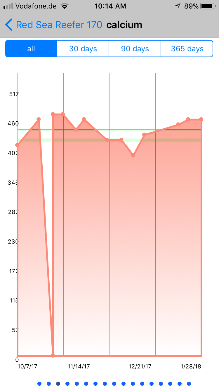 KH und Ca würde ich sinken lassen, auf ideal KH 7-7,5 und Ca 410-430.